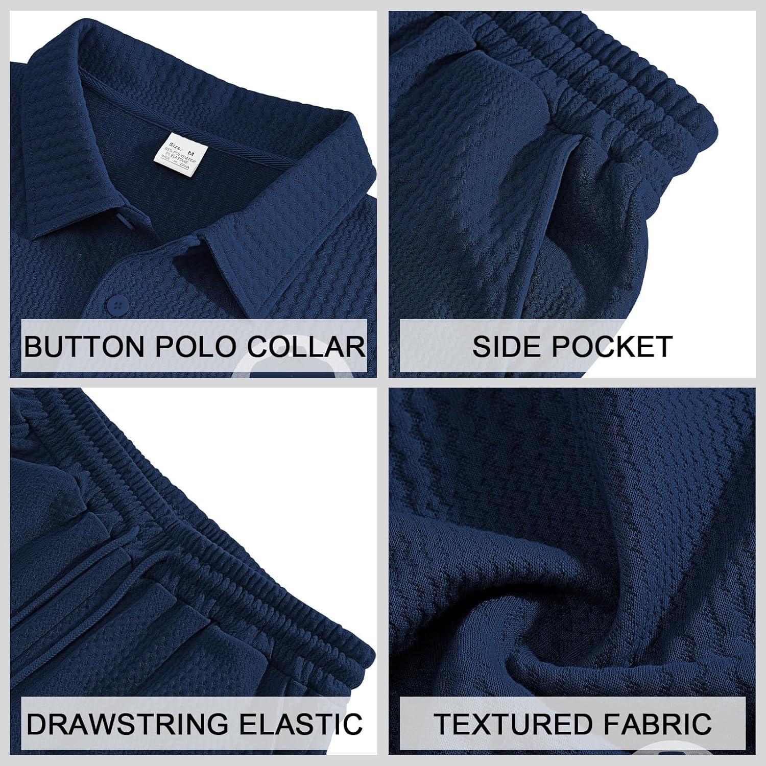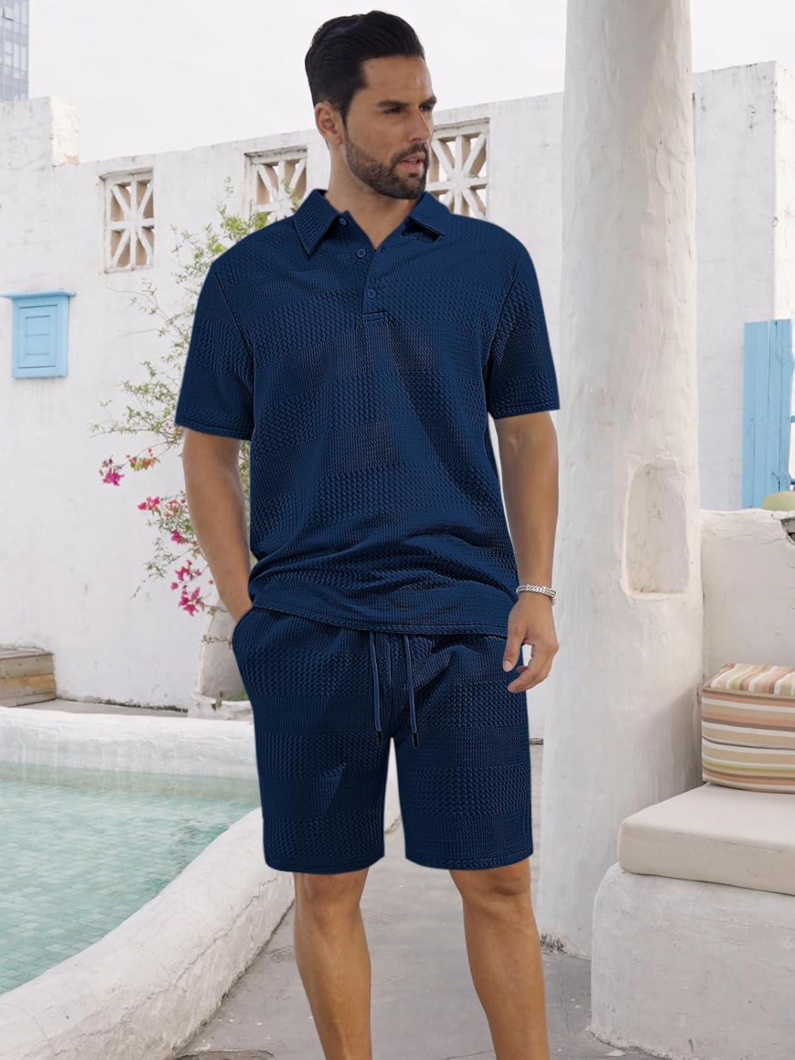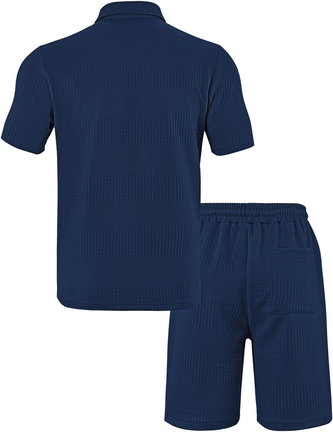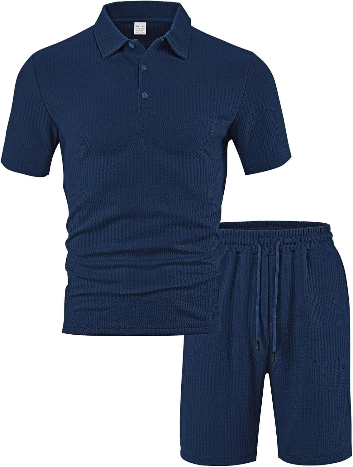 Mens 2 Piece Outfits Polo Shirt and Shorts Set Short Sleeve Tracksuits Casual Athletic Jogging Summer Outfits(Navy-1)