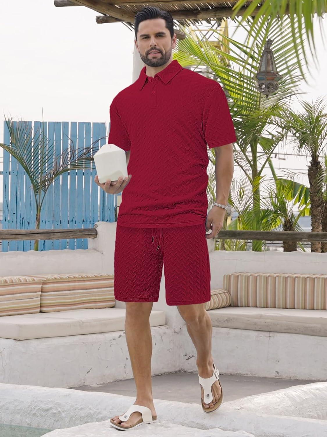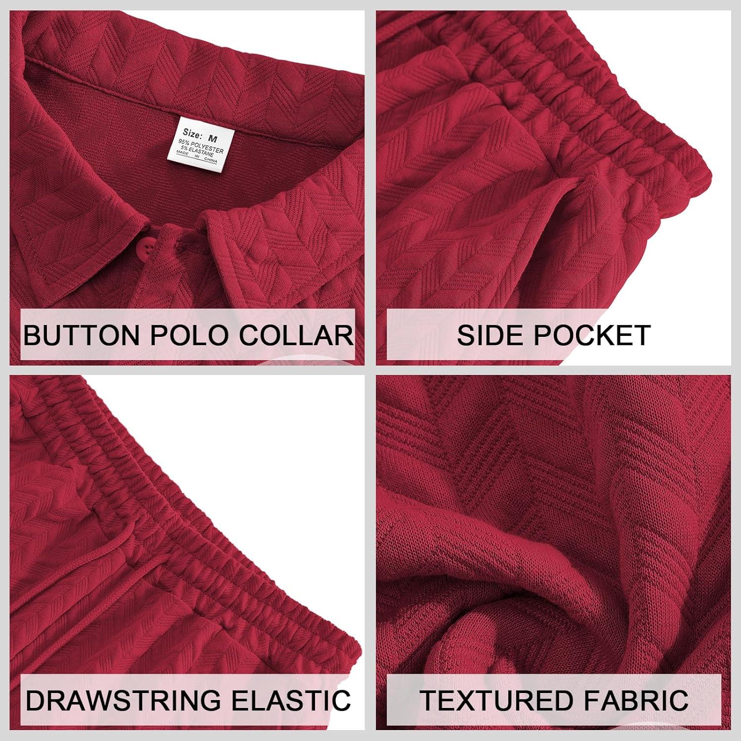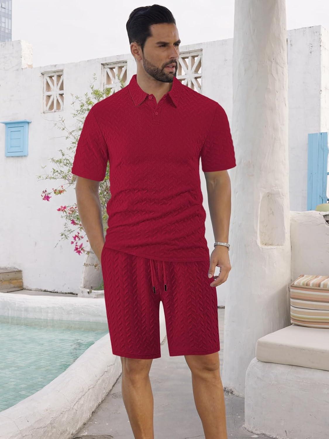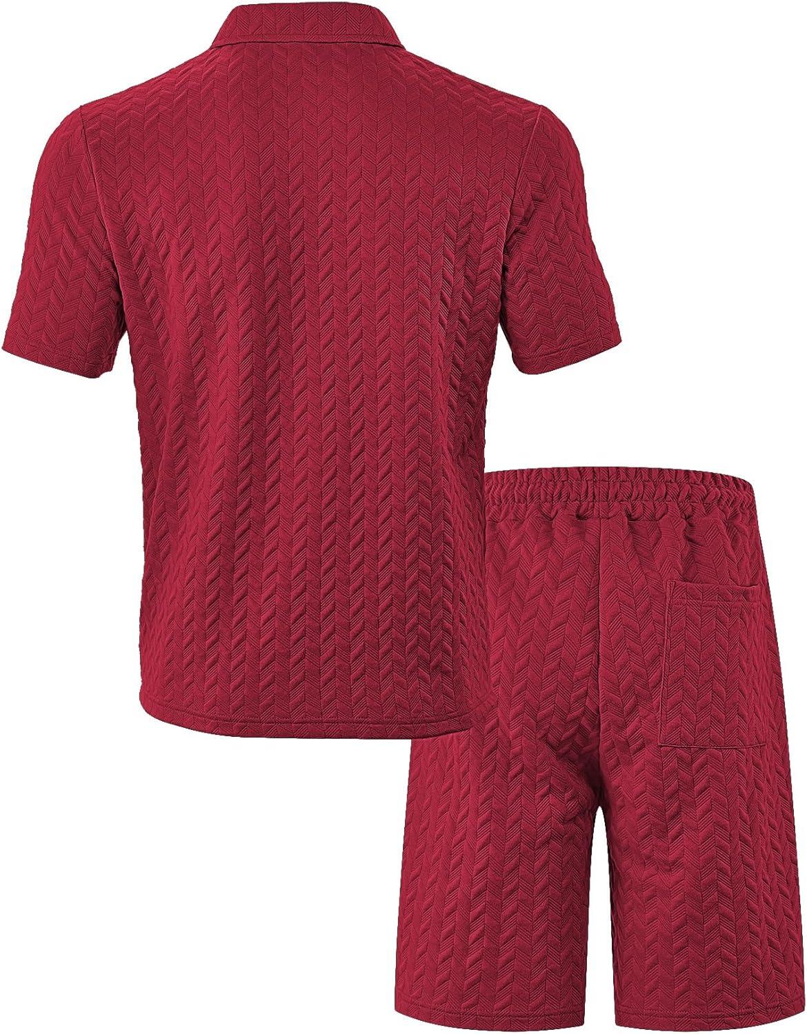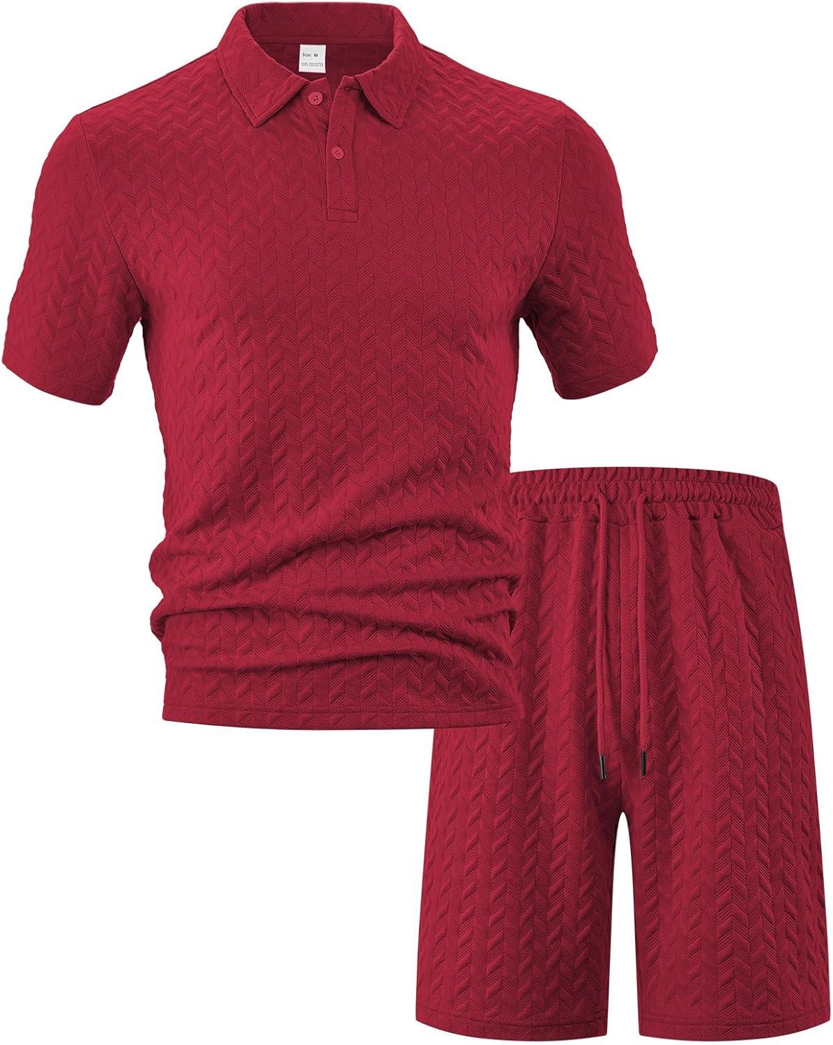 Mens 2 Piece Outfits Polo Shirt and Shorts Set Short Sleeve Tracksuits Casual Athletic Jogging Summer Outfits(Wine Red)