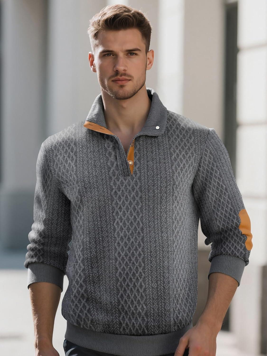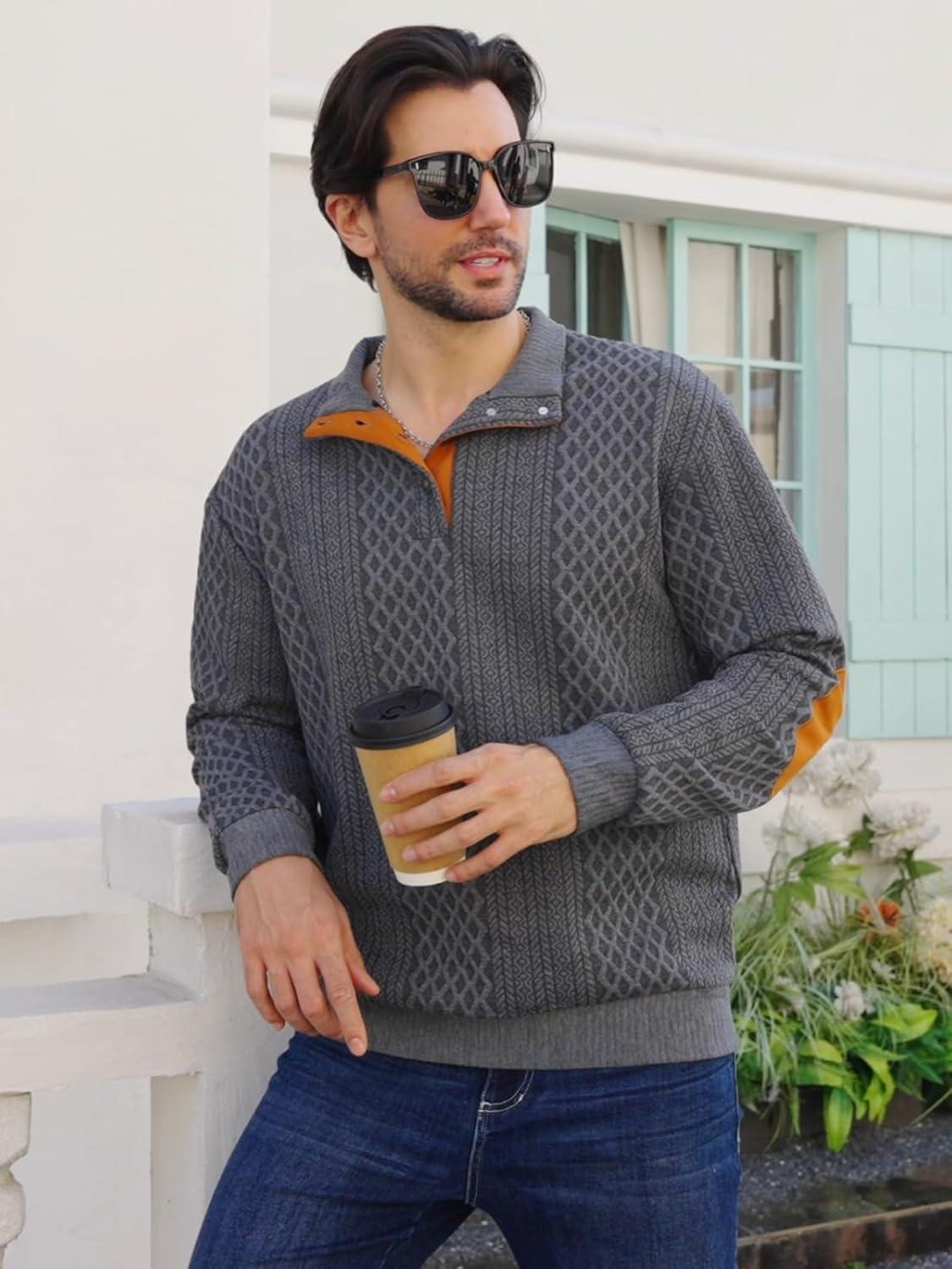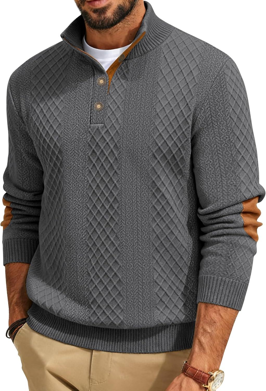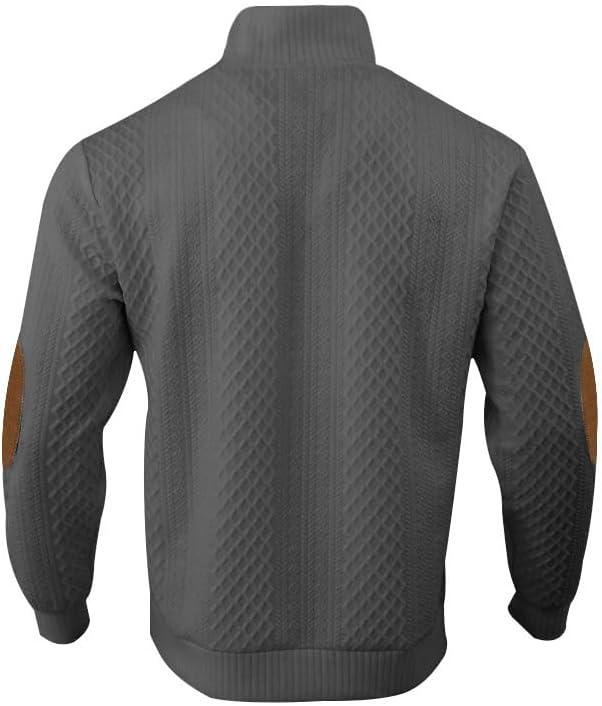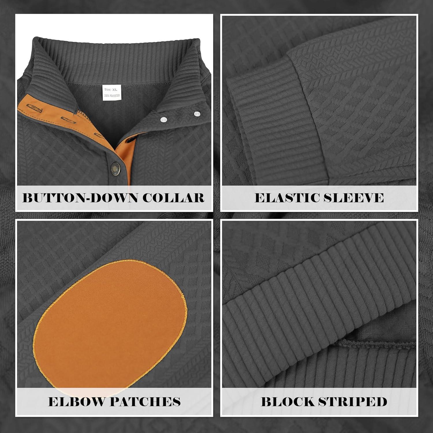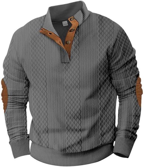 Men’s Block Striped Sweatshirt Casual Outdoor Long Sleeve Stand Collar Pullover Sweatshirt Button Quarter Sweater(Grey)