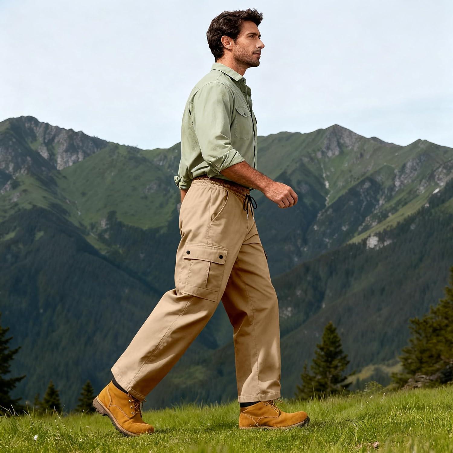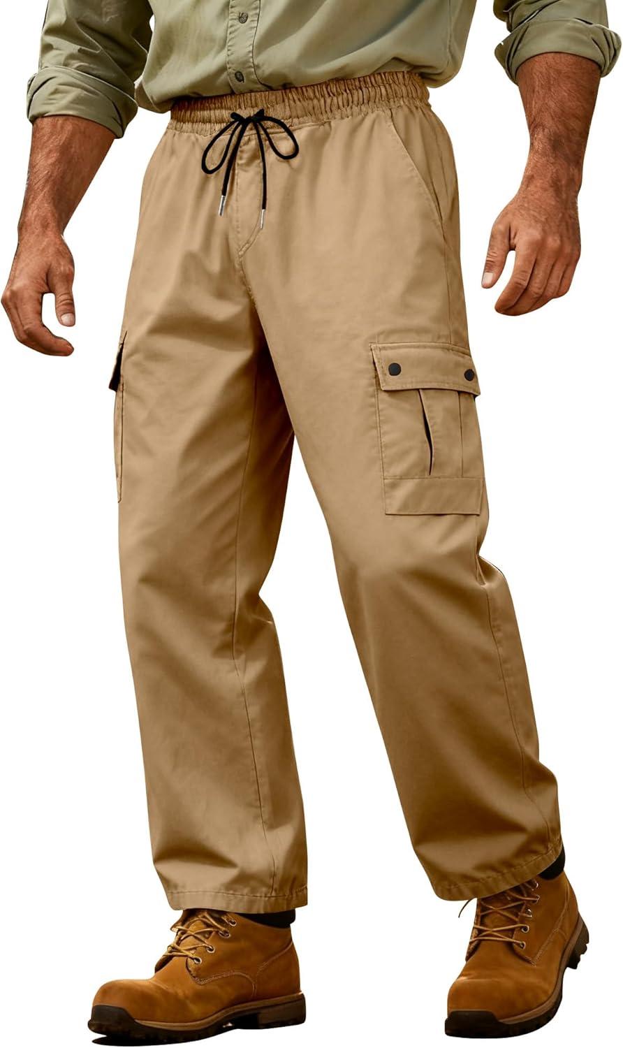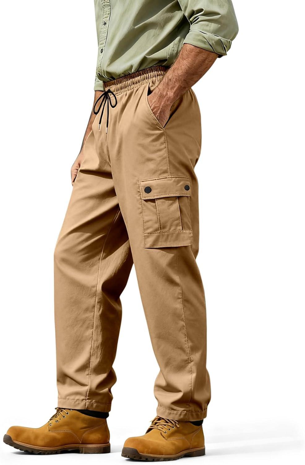 Mens Cargo Pants Stretch Tactical Pants Lightweight Work Pants Casual Outdoor Hiking Pants with Multi Pockets(Khaki)
