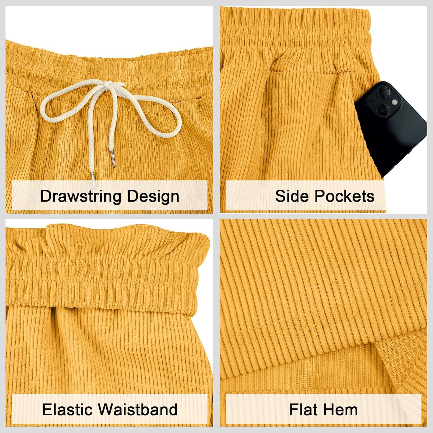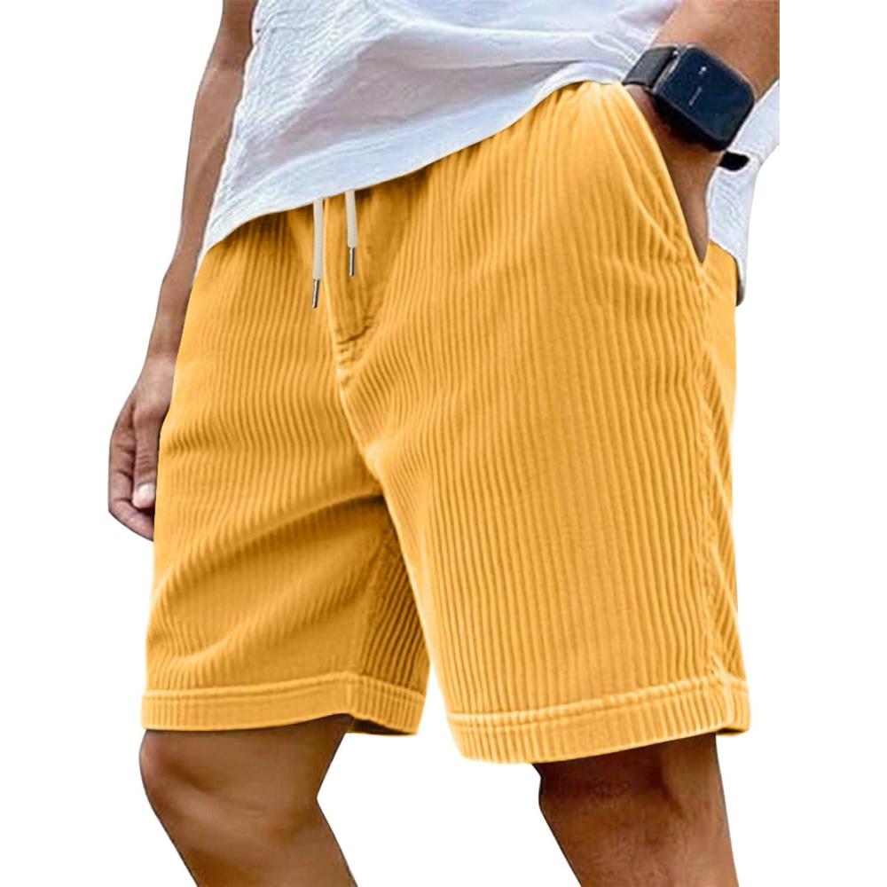 Mens Cargo Shorts Casual Drawstring Elastic Waist Corduroy Summer Beach Shorts with Pockets(Yellow-1)