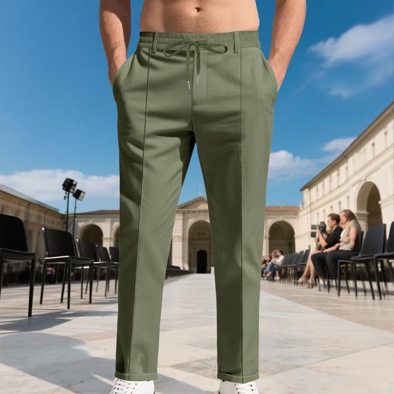 Men’s Casual Pants Elastic Drawstring Waist Pants Lightweight Loose Straight Leg Long Beach Sweatpants(Army Green)