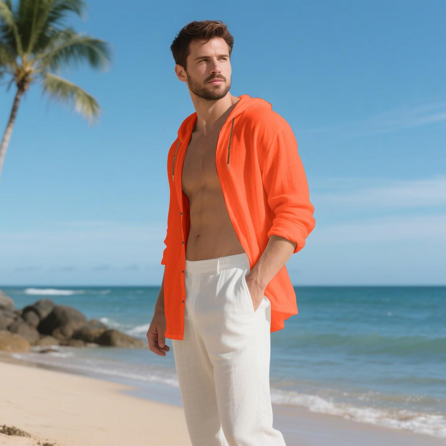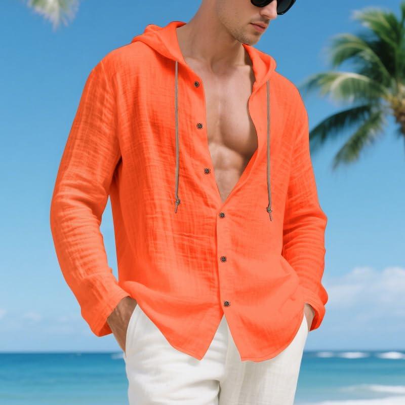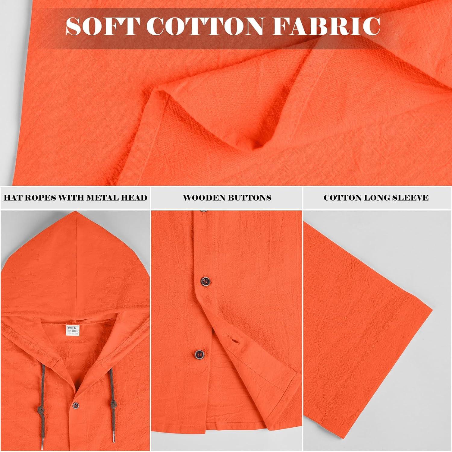 Mens Cotton Linen Hoodies Lightweight Long Sleeve Button Down Shirts Casual Hawaiian Beach Yoga Tops Sweatshirts(Orange)
