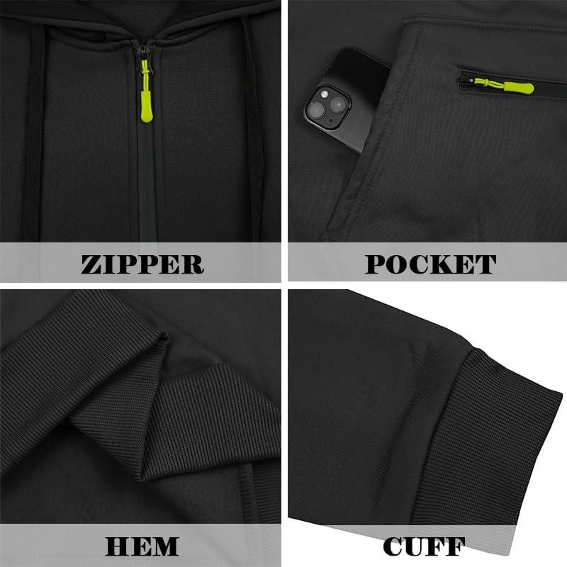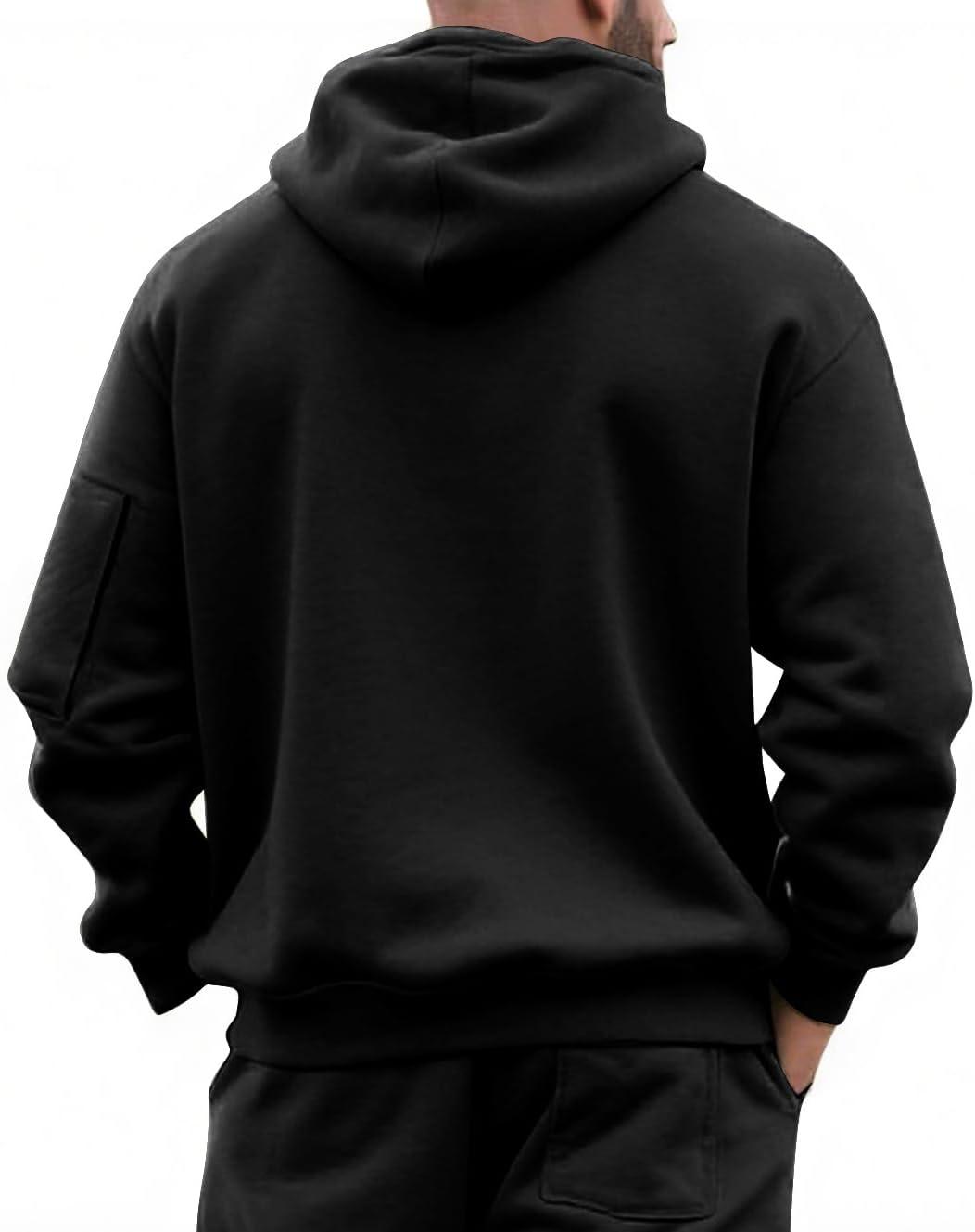 Men’s Fleece Hoodie Sweatshirts Workout Athletic Hoodies Long Sleeve Quarter Zip Pullover Sweatshirt with Kanga Pockets(Black)