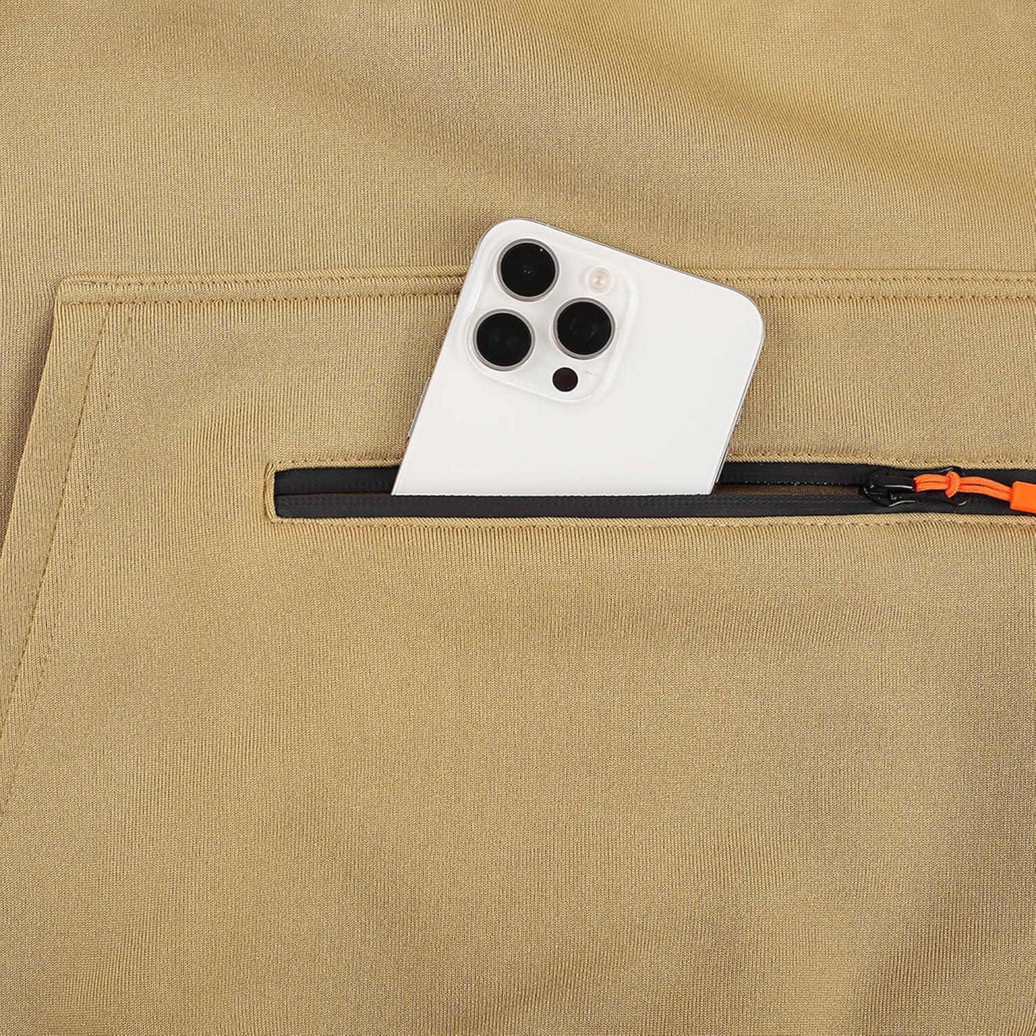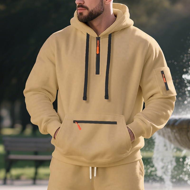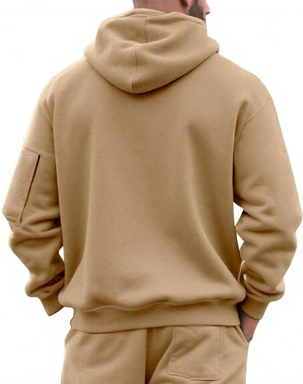 Men’s Fleece Hoodie Sweatshirts Workout Athletic Hoodies Long Sleeve Quarter Zip Pullover Sweatshirt with Kanga Pockets(Khaki)