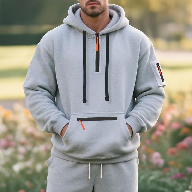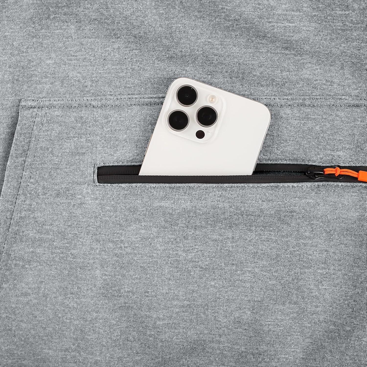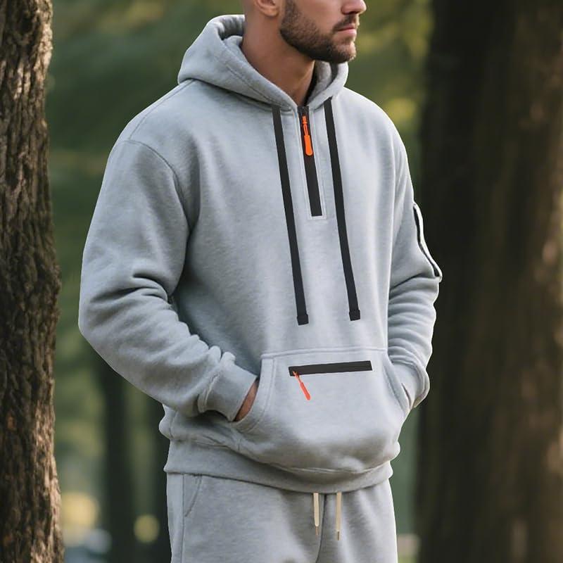 Men’s Fleece Hoodie Sweatshirts Workout Athletic Hoodies Long Sleeve Quarter Zip Pullover Sweatshirt with Kanga Pockets(Light Grey)