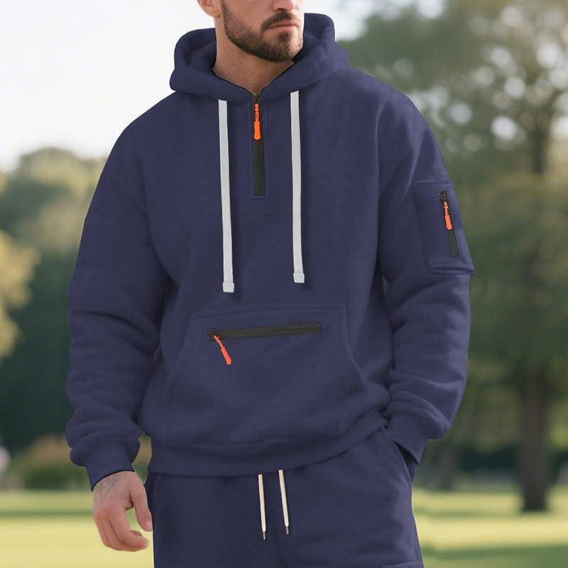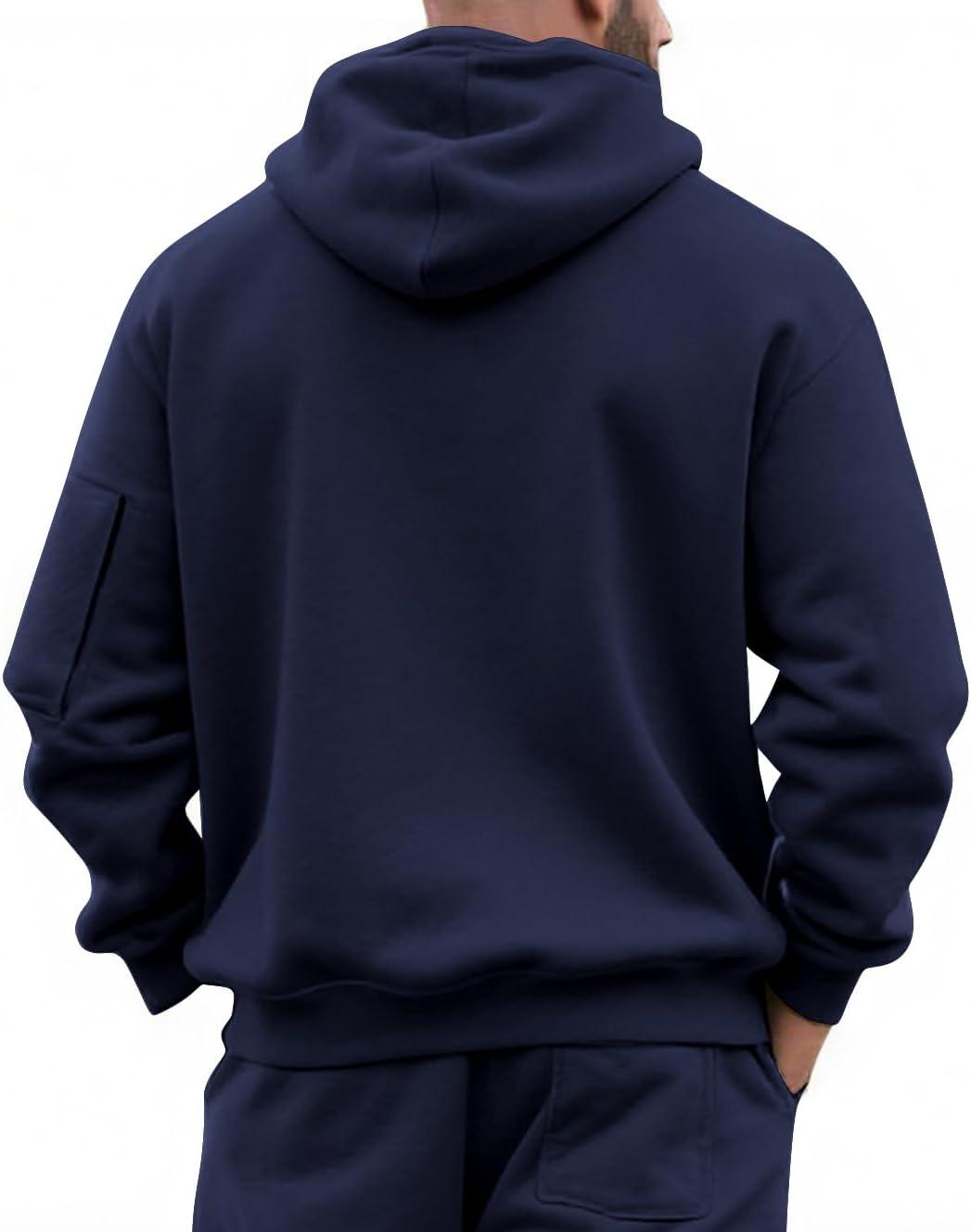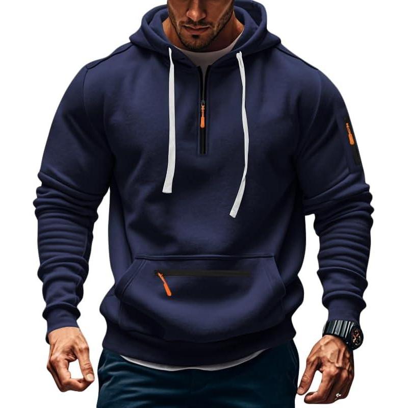 Men’s Fleece Hoodie Sweatshirts Workout Athletic Hoodies Long Sleeve Quarter Zip Pullover Sweatshirt with Kanga Pockets(Navy)