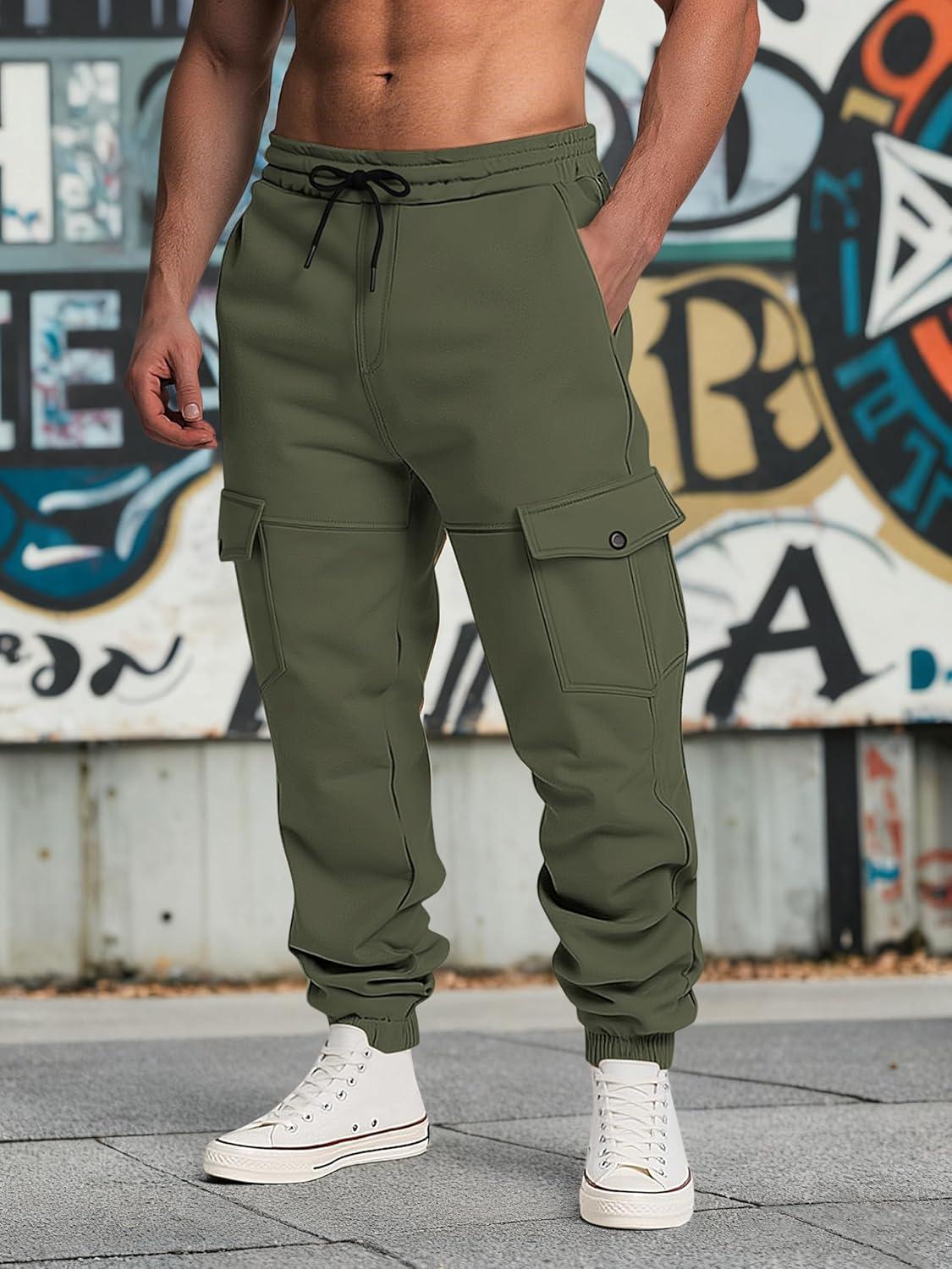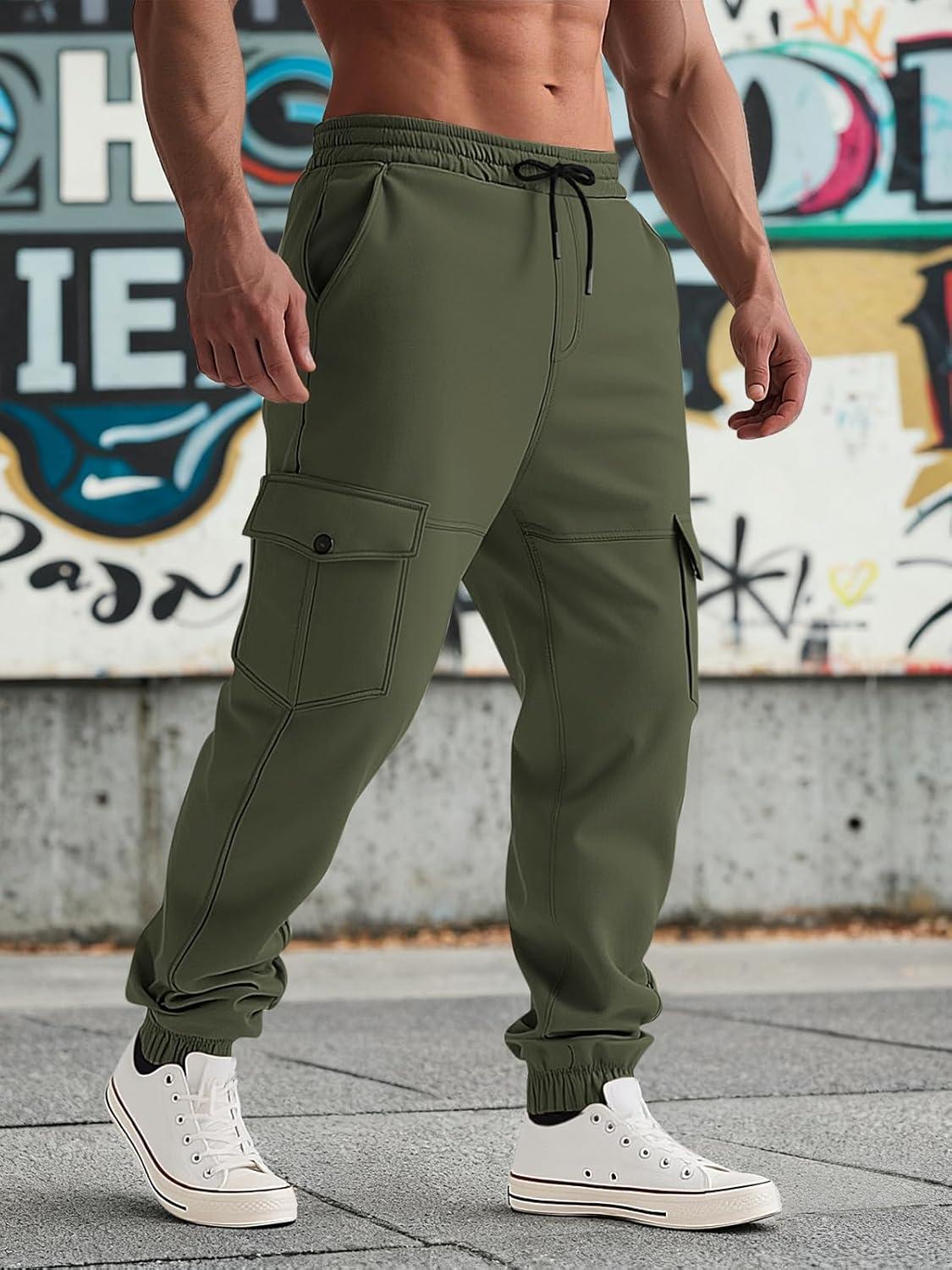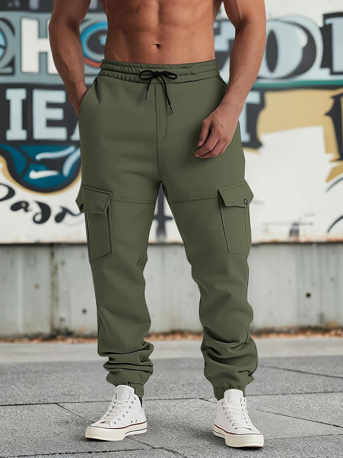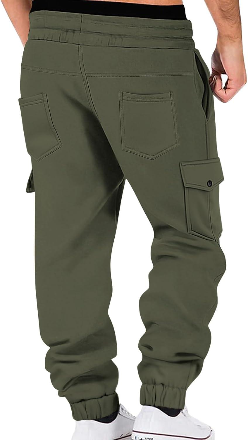Mens Fleece Lined Sweatpants Warm Winter Athletic Jogger Pants with 6 Pockets Drawstring Outdoor Trousers(Army Green)