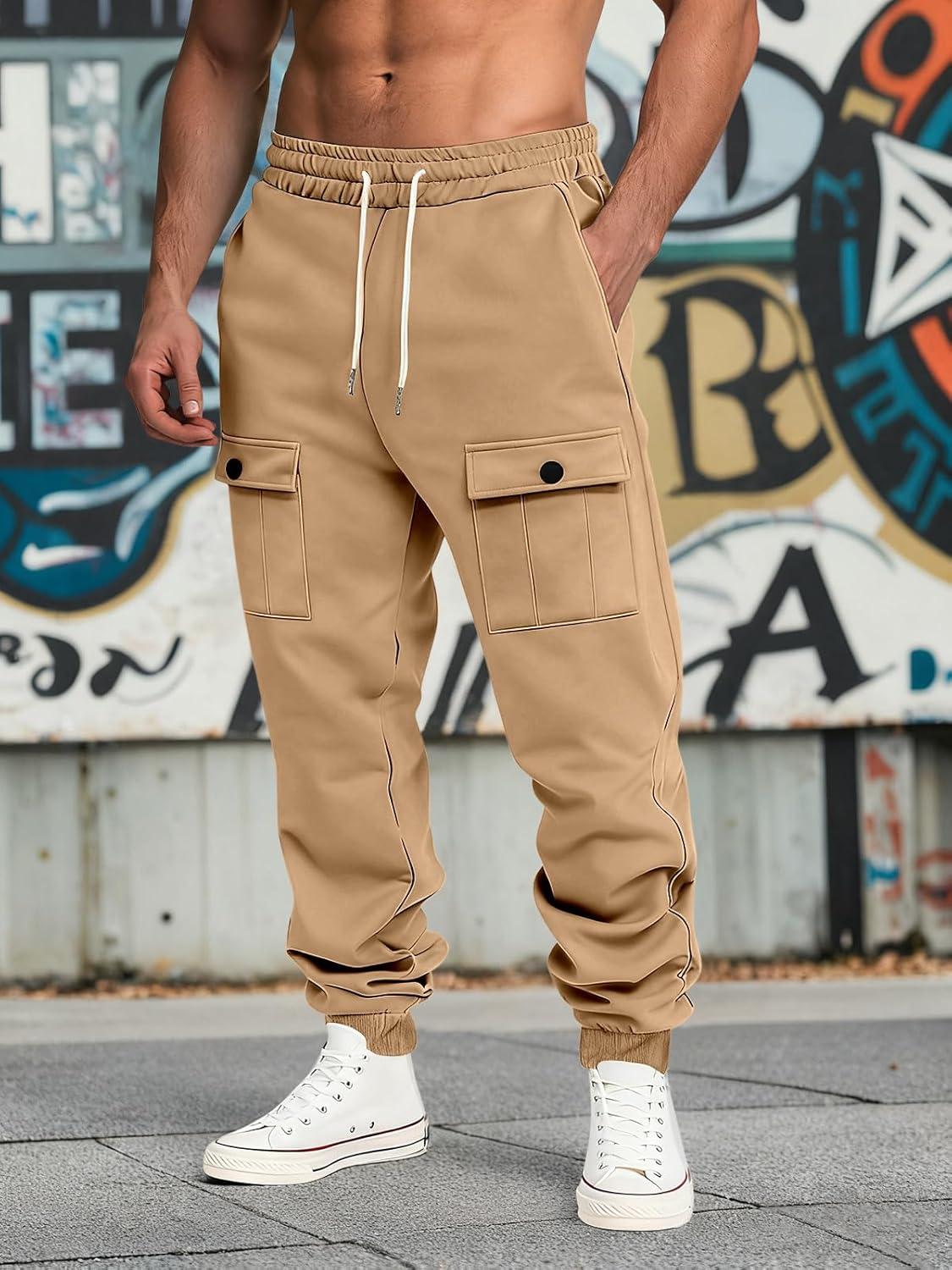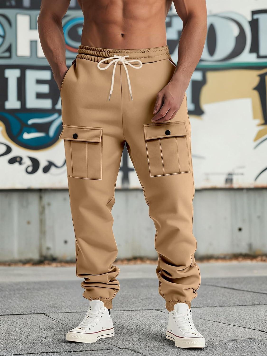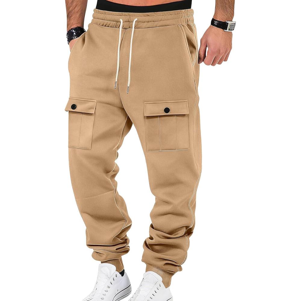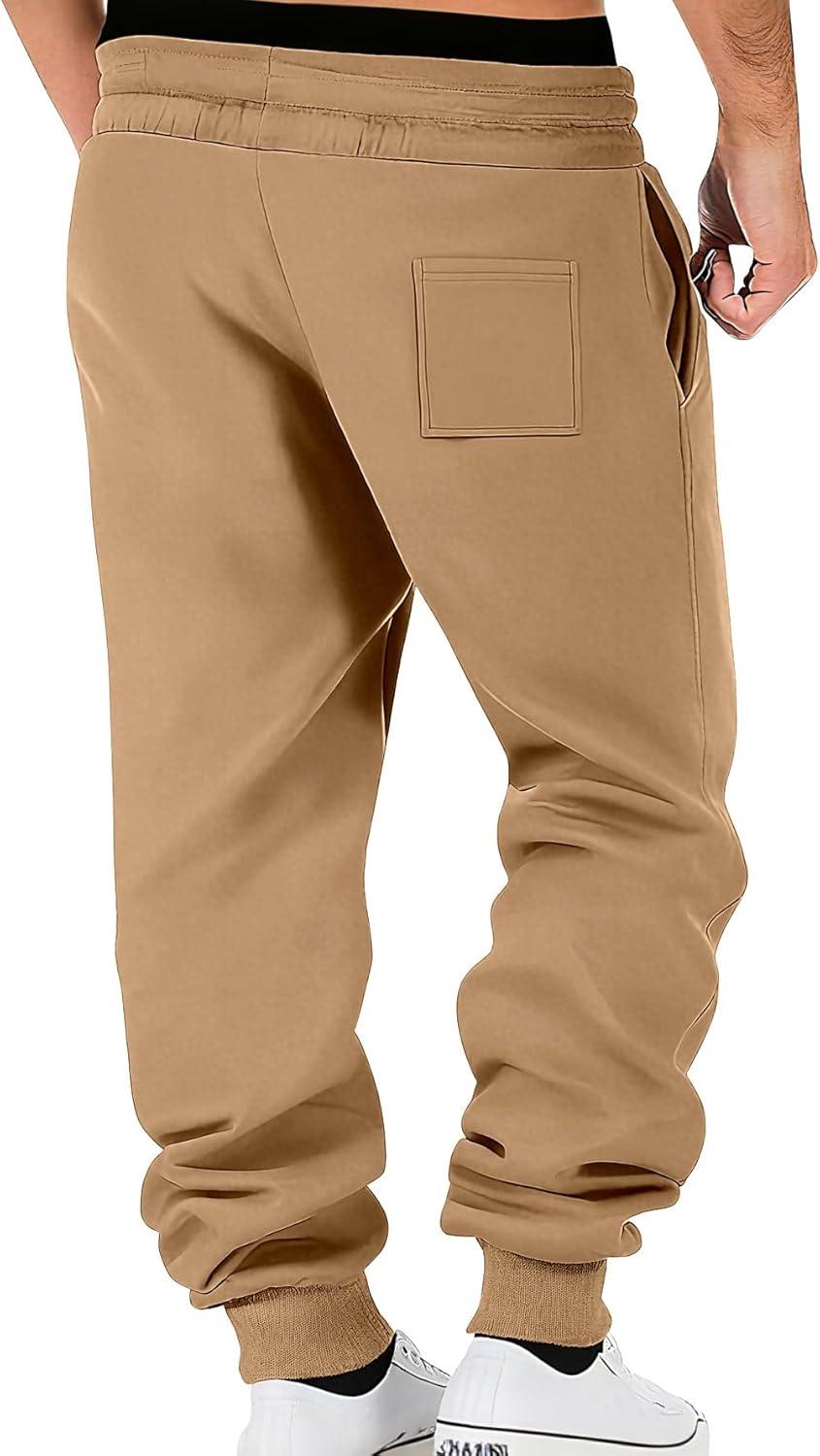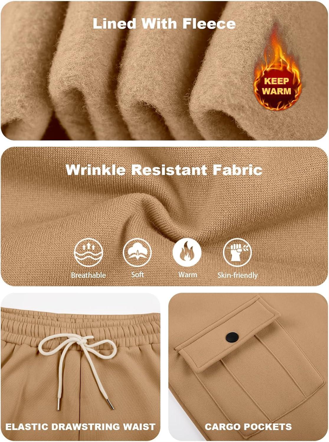 Mens Fleece Lined Sweatpants Warm Winter Athletic Jogger Pants with 6 Pockets Drawstring Outdoor Trousers(Camel)