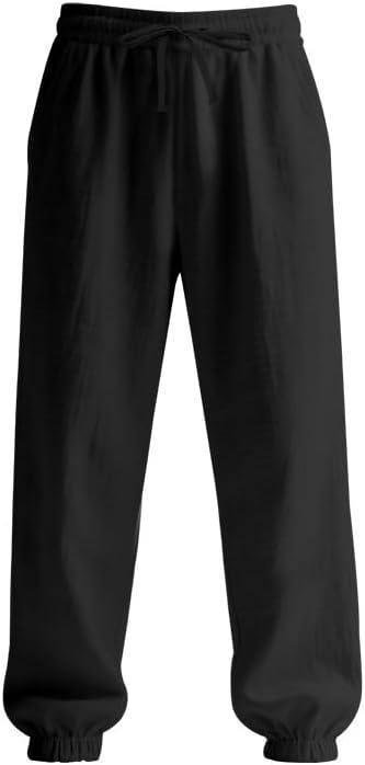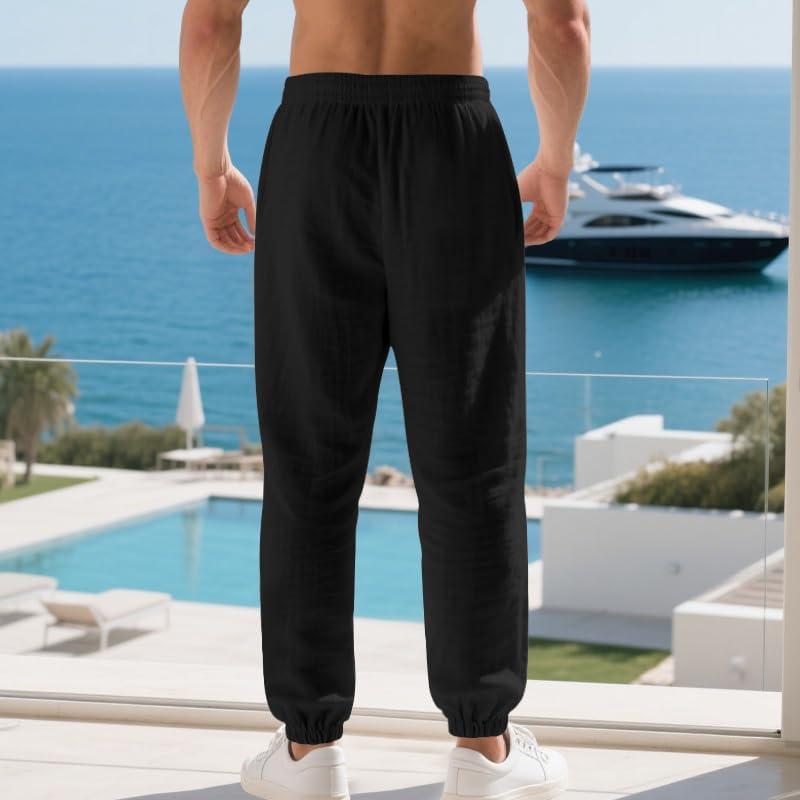 Men’s Linen Joggers Summer Beach Lightweight Drawstring Yoga Pants with Pockets & Elastic Cuffs(Black)