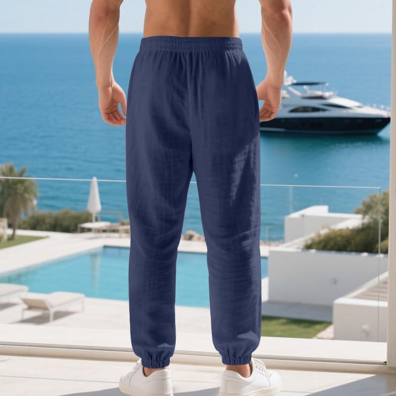 Men’s Linen Joggers Summer Beach Lightweight Drawstring Yoga Pants with Pockets & Elastic Cuffs(Navy)