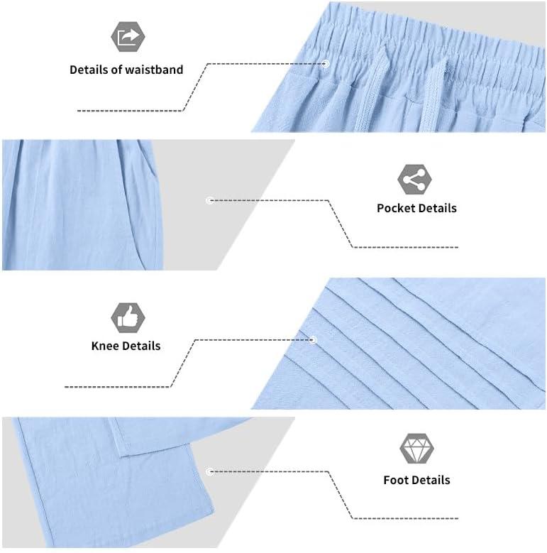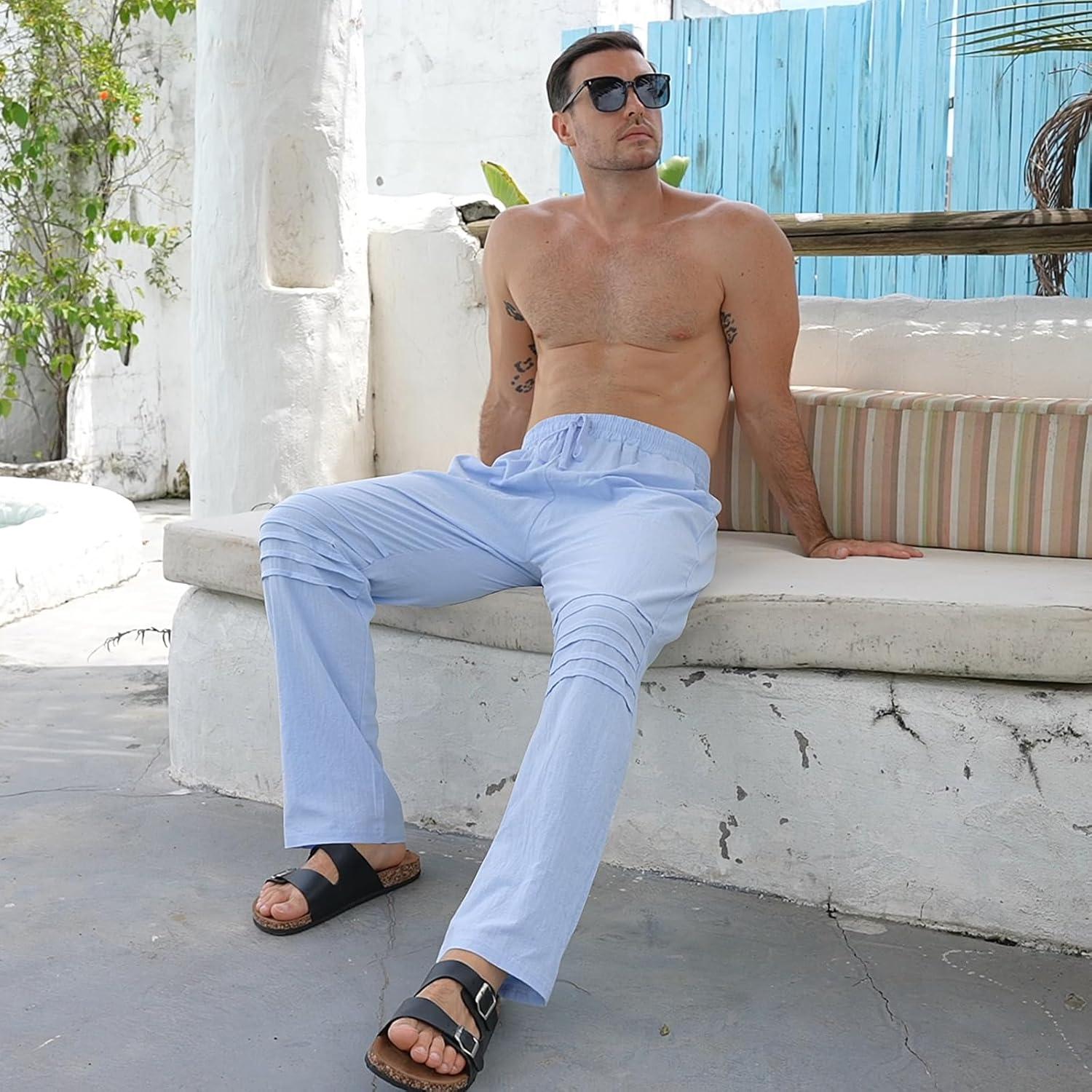 Mens Linen Pants Casual Beach Pants for Men Elastic Waist Drawstring Yoga Trousers with Pockets(Blue)