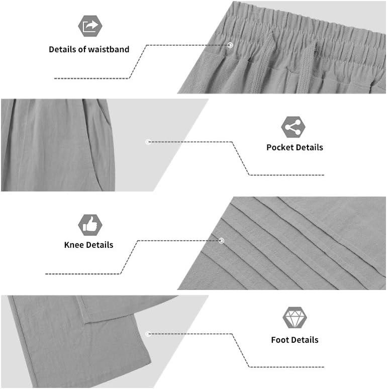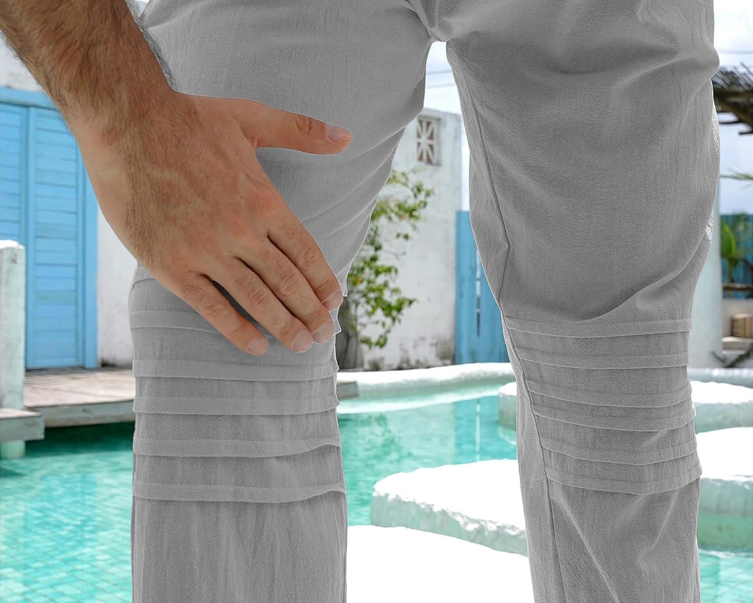 Mens Linen Pants Casual Beach Pants for Men Elastic Waist Drawstring Yoga Trousers with Pockets(Grey)