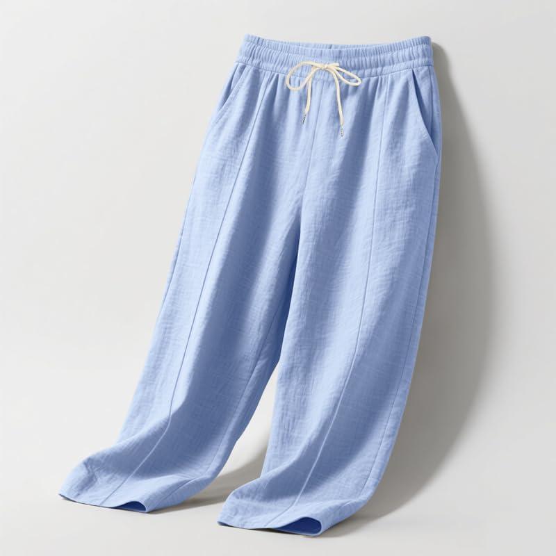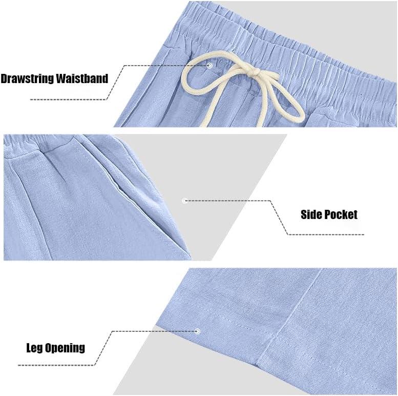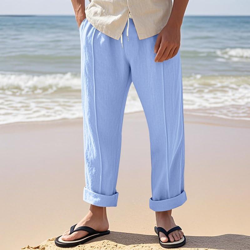 Men’s Linen Pants Casual Beach Yoga Pants Elastic Waist Drawstring Straight Leg Loose Lightweight Trousers with Pockets(Light Blue)