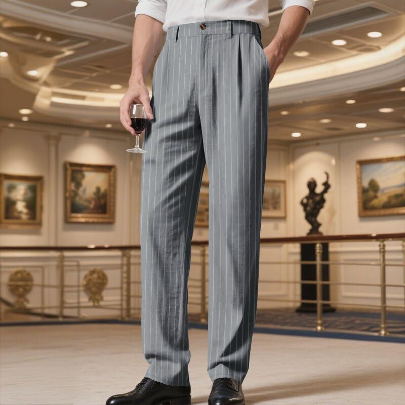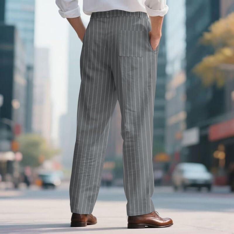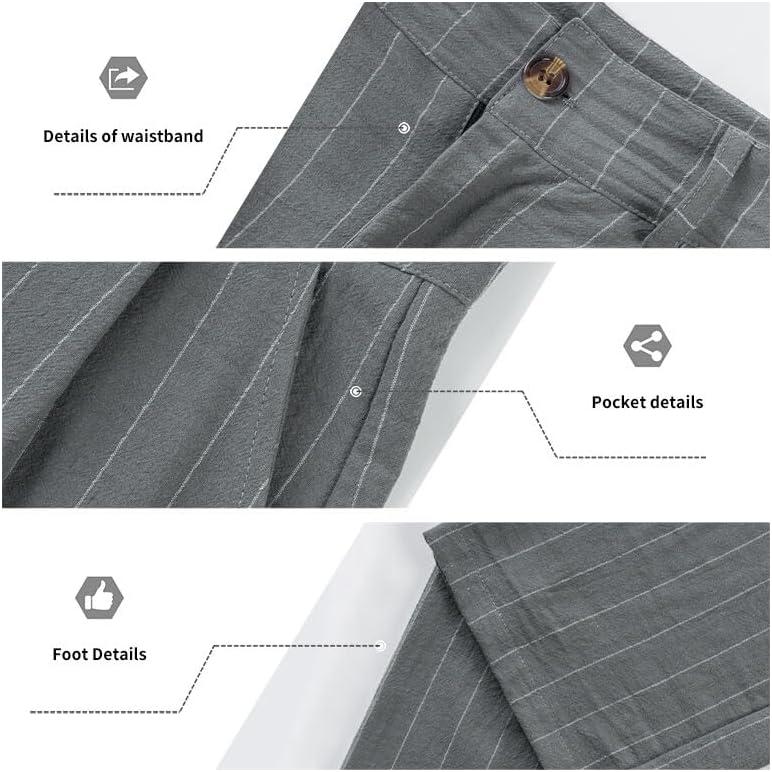 Mens Linen Pants Lightweight Casual Pants Straight-Legs Loose Fit Summer Beach Yoga Trousers with Pockets(Grey-1)