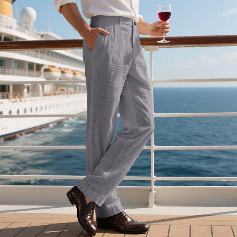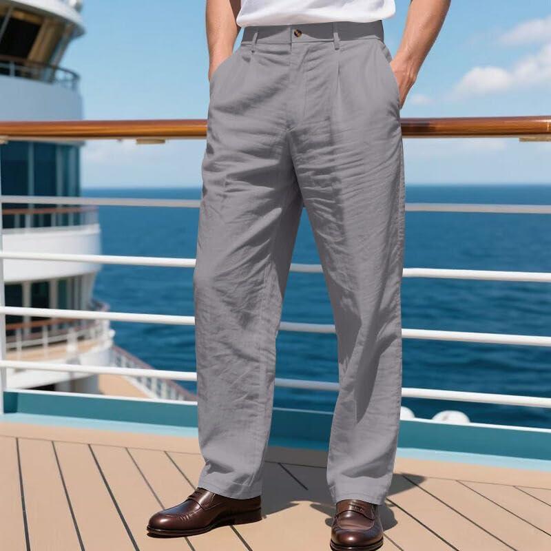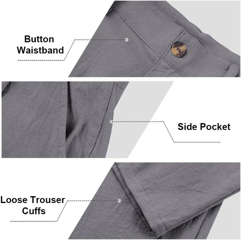 Mens Linen Pants Lightweight Casual Pants Straight-Legs Loose Fit Summer Beach Yoga Trousers with Pockets(Grey)