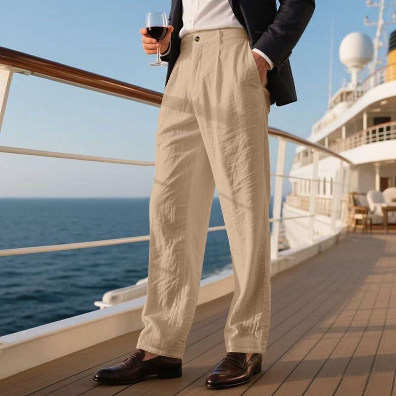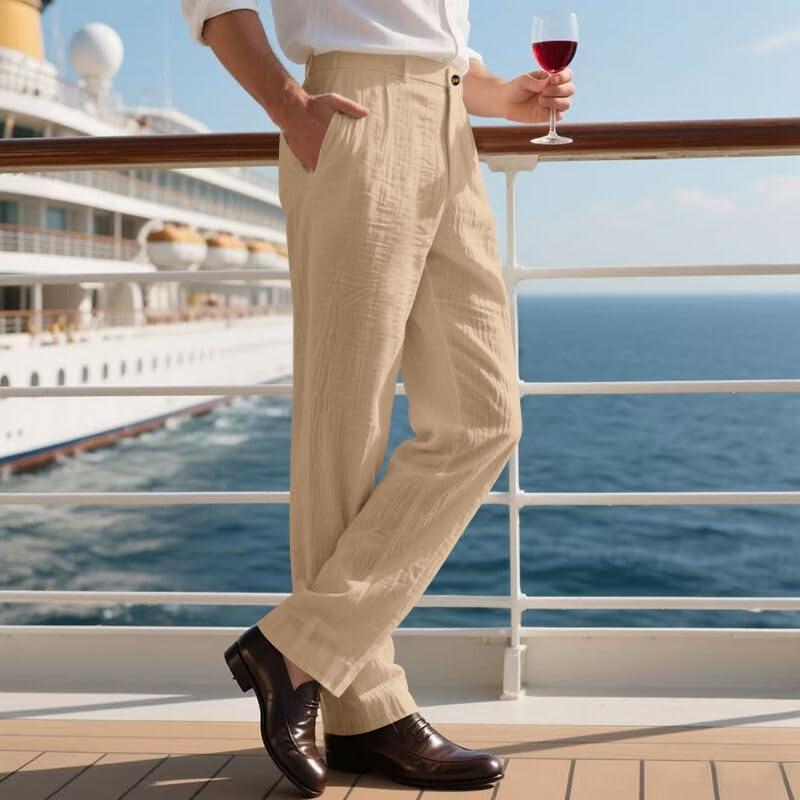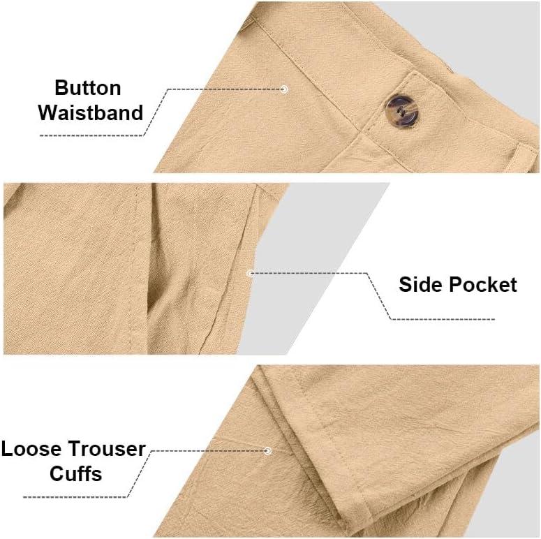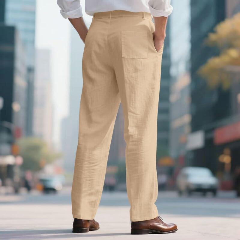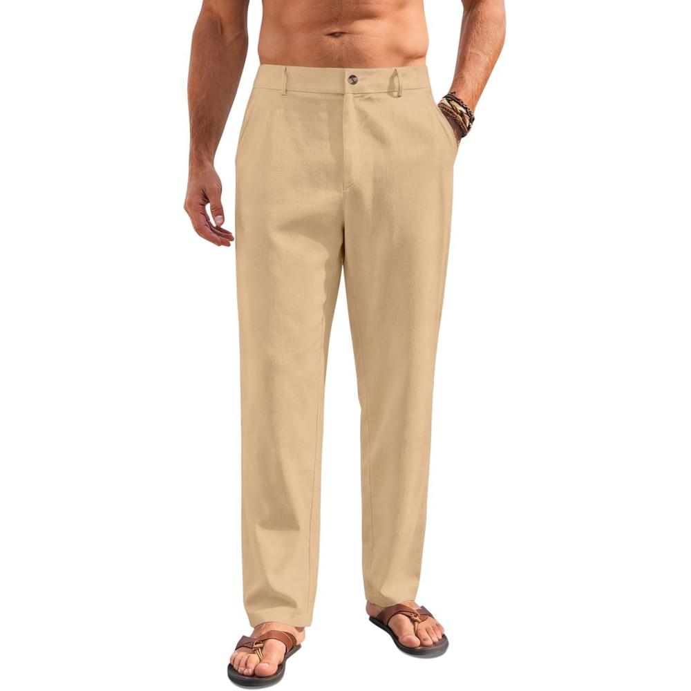 Mens Linen Pants Lightweight Casual Pants Straight-Legs Loose Fit Summer Beach Yoga Trousers with Pockets(Khaki)