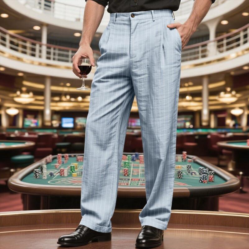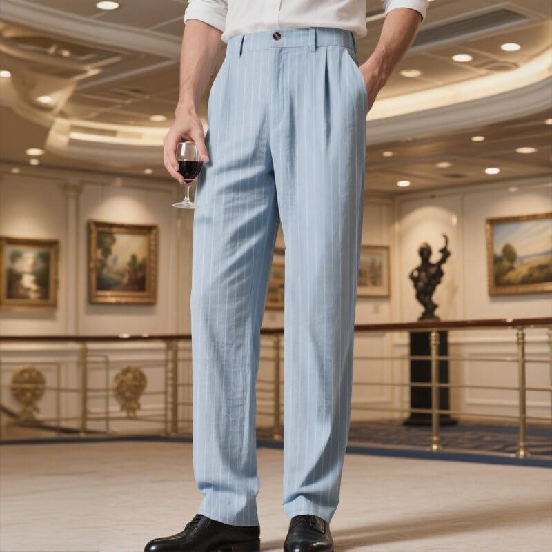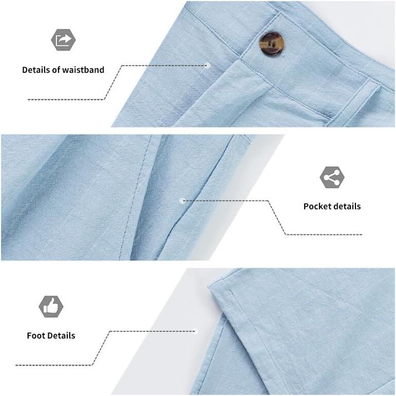 Mens Linen Pants Lightweight Casual Pants Straight-Legs Loose Fit Summer Beach Yoga Trousers with Pockets(Light Blue-1)
