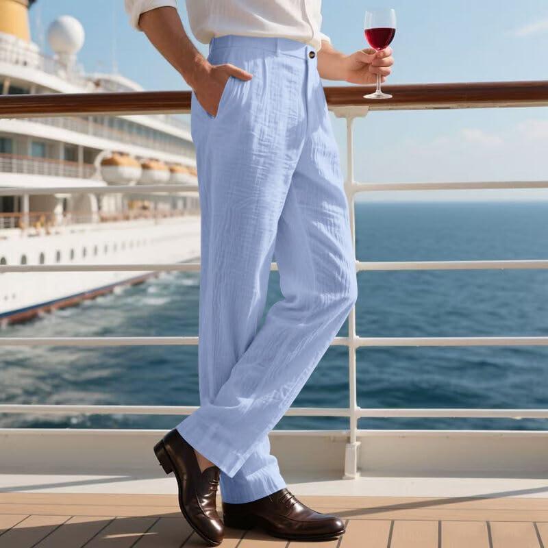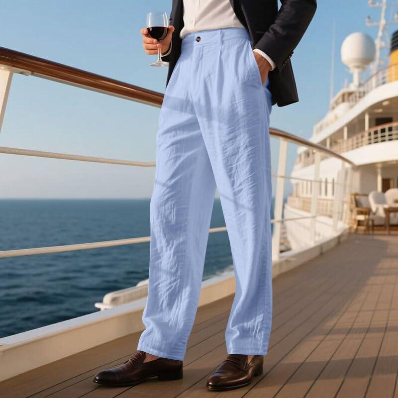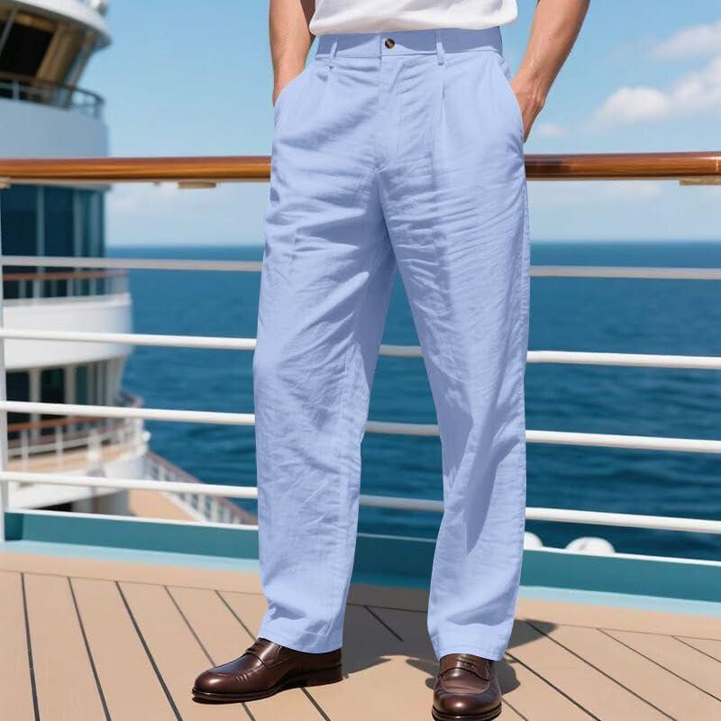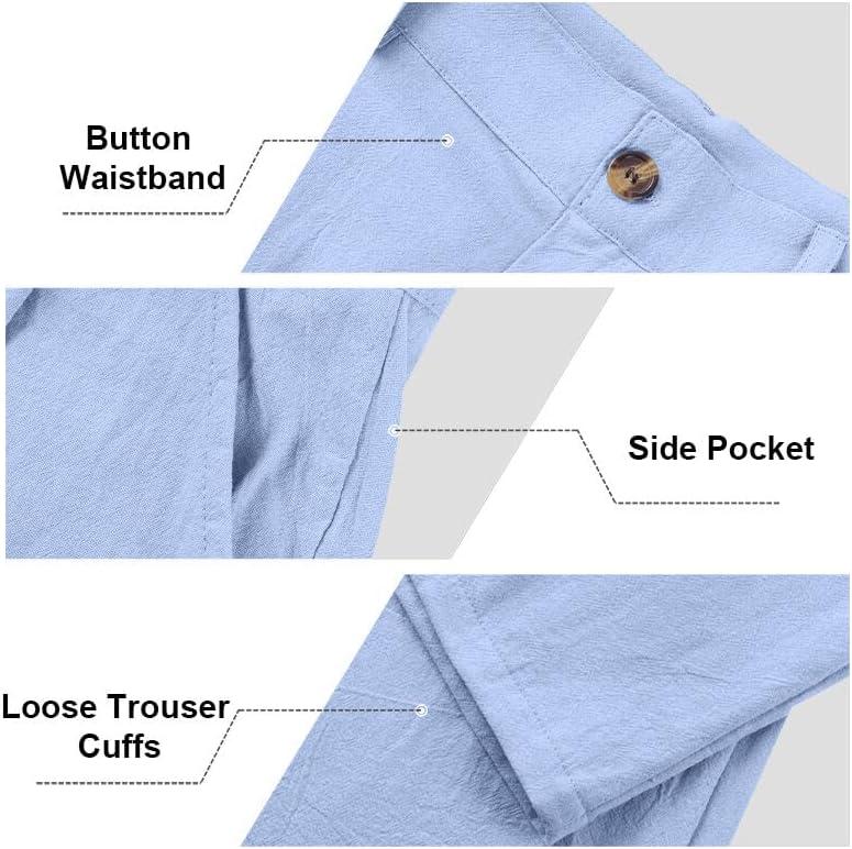 Mens Linen Pants Lightweight Casual Pants Straight-Legs Loose Fit Summer Beach Yoga Trousers with Pockets(Light Blue)