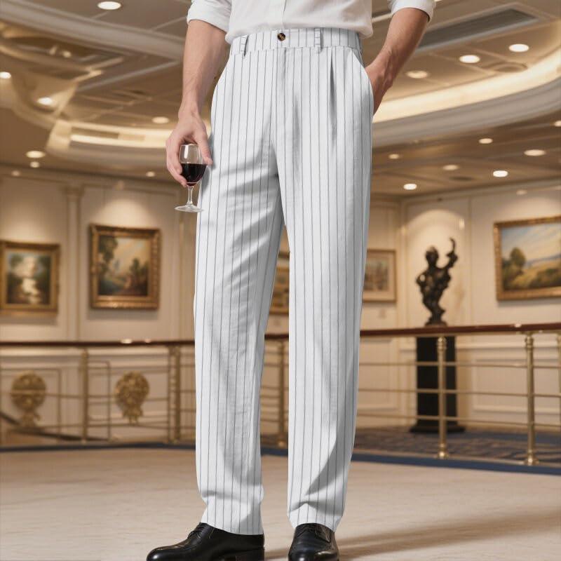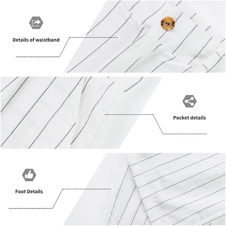 Mens Linen Pants Lightweight Casual Pants Straight-Legs Loose Fit Summer Beach Yoga Trousers with Pockets(White-1)