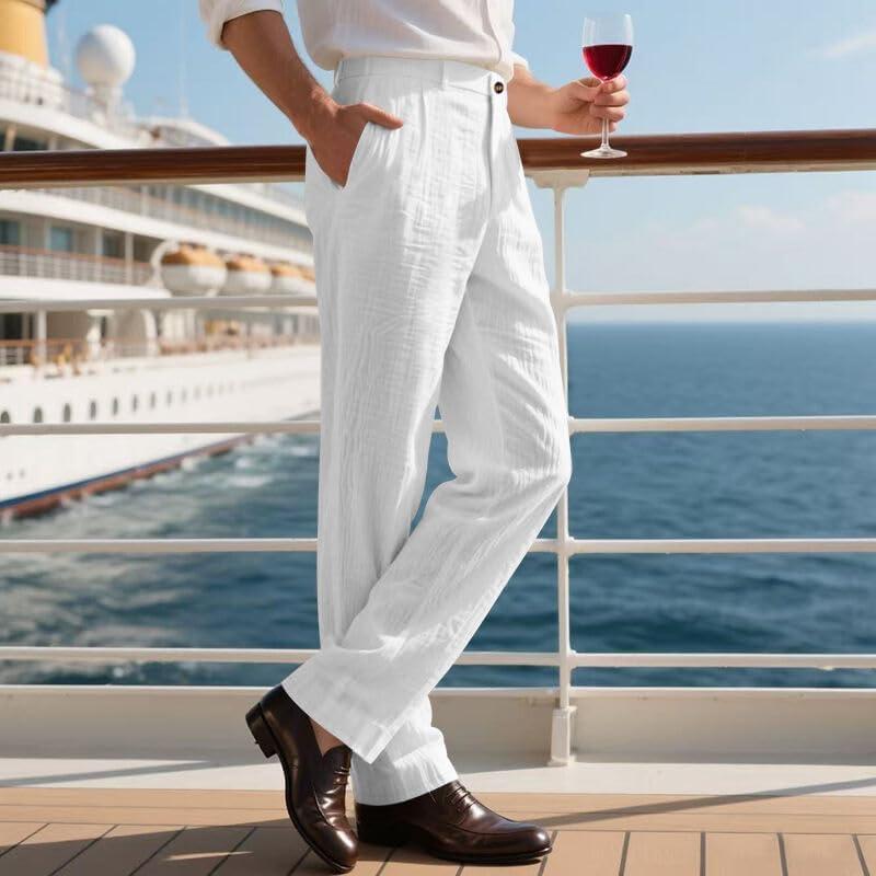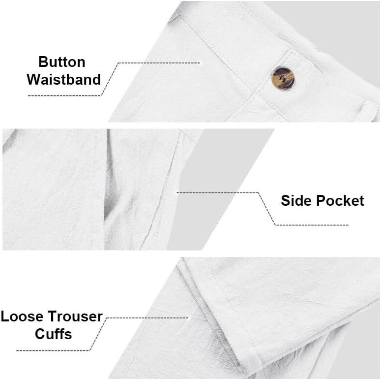 Mens Linen Pants Lightweight Casual Pants Straight-Legs Loose Fit Summer Beach Yoga Trousers with Pockets(White)