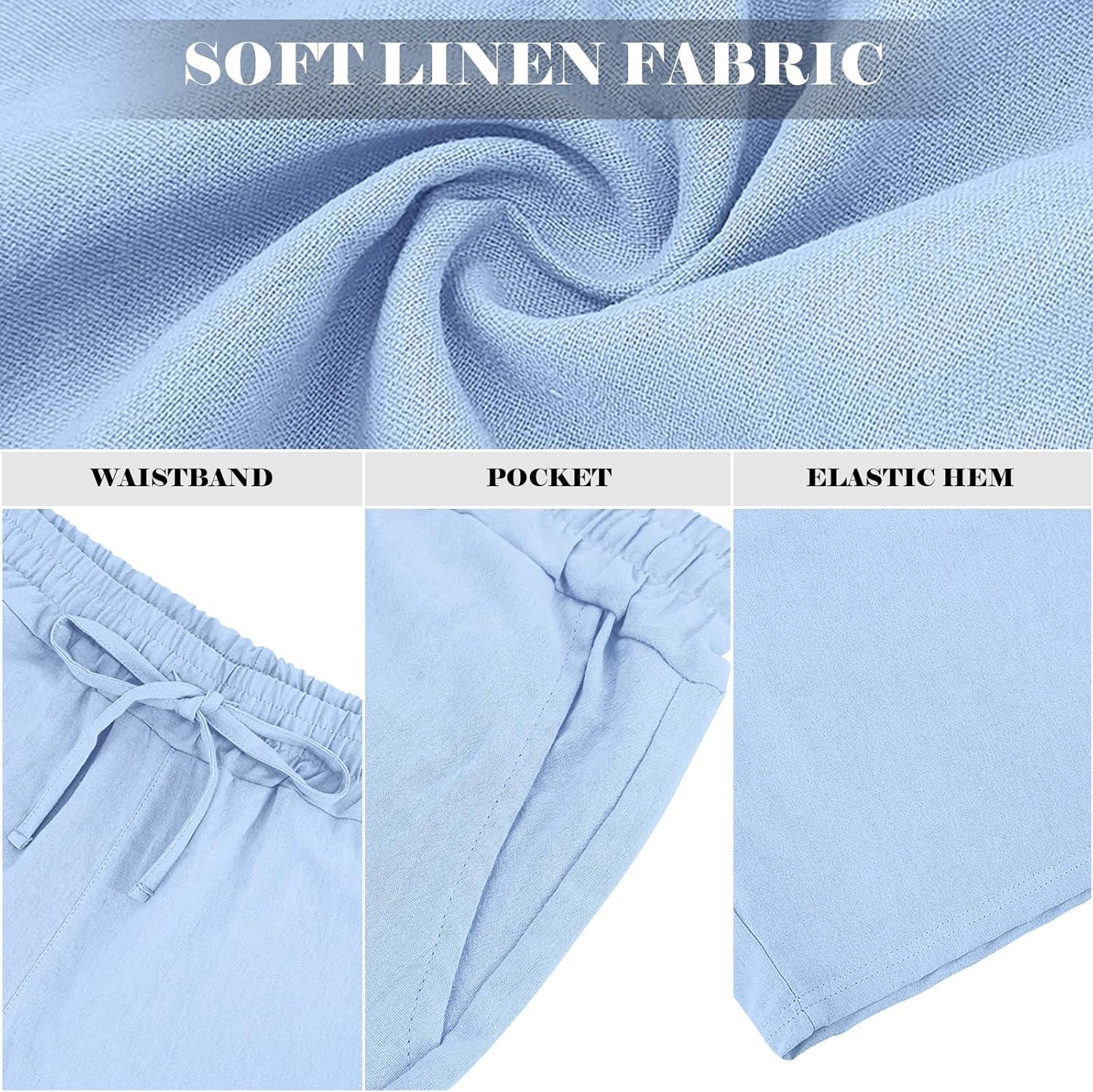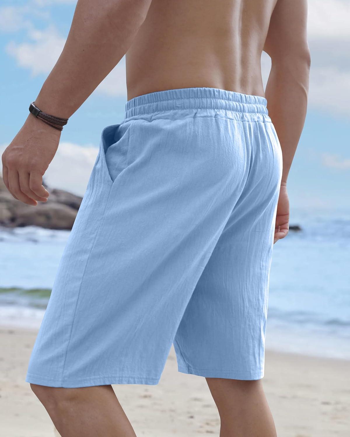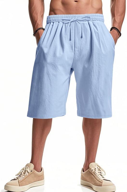 Mens Linen Shorts Casual Drawstring Elastic Waist Lightweight Breathable Summer Beach Shorts for Men(Blue)