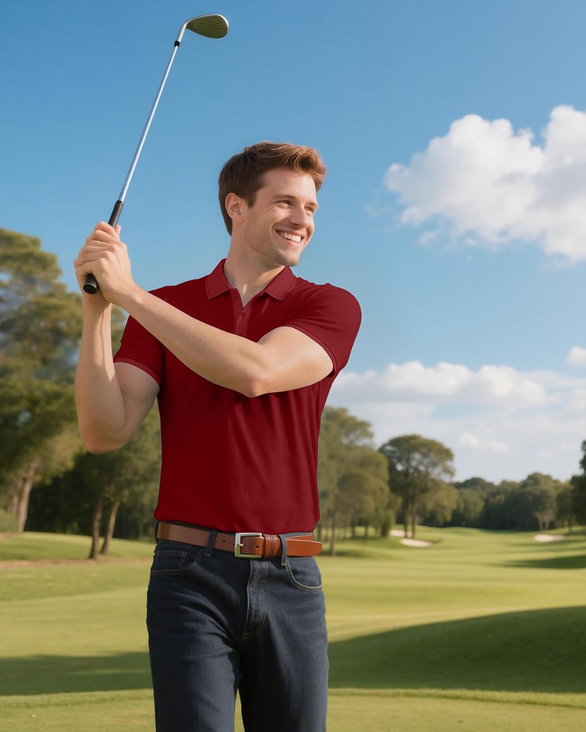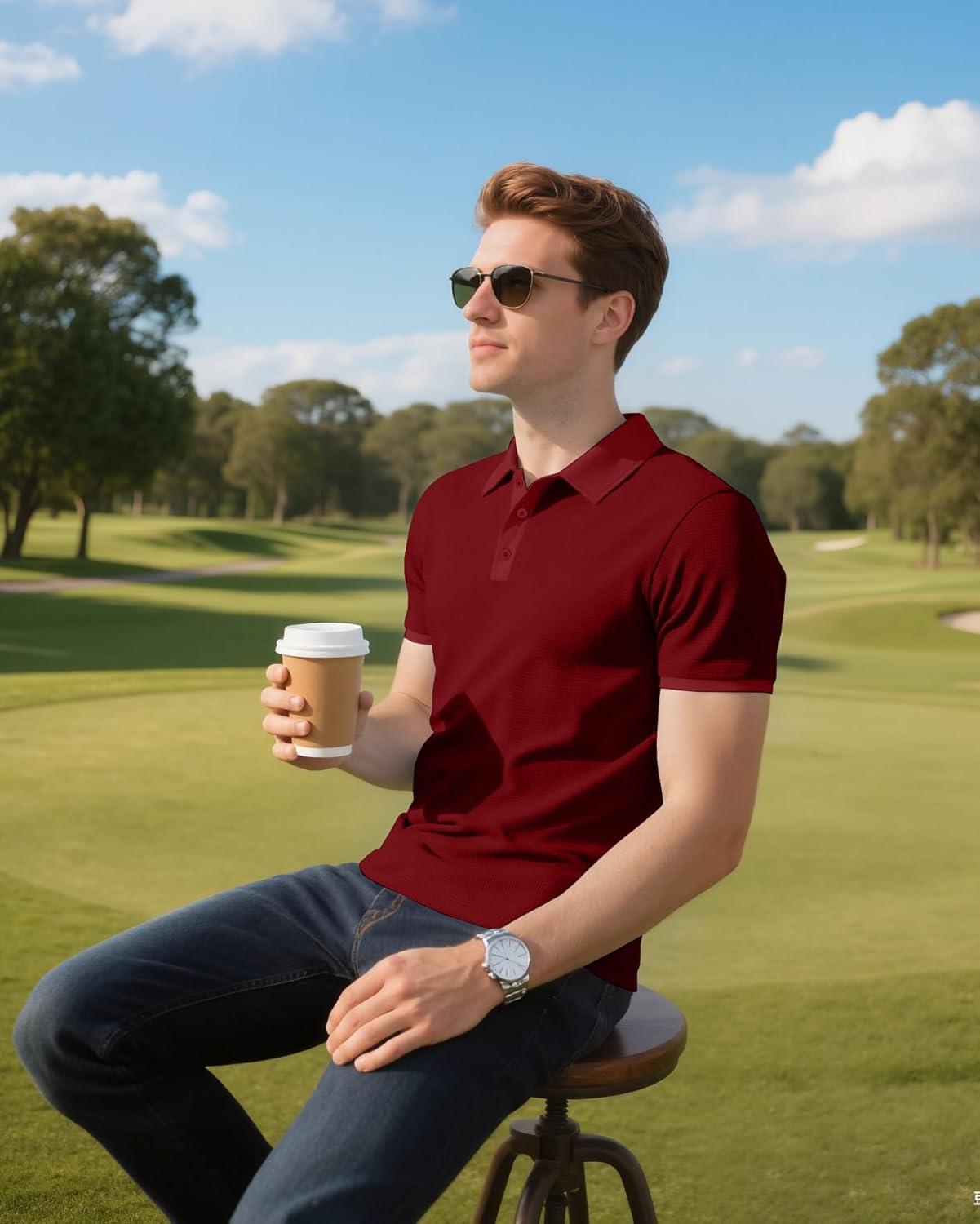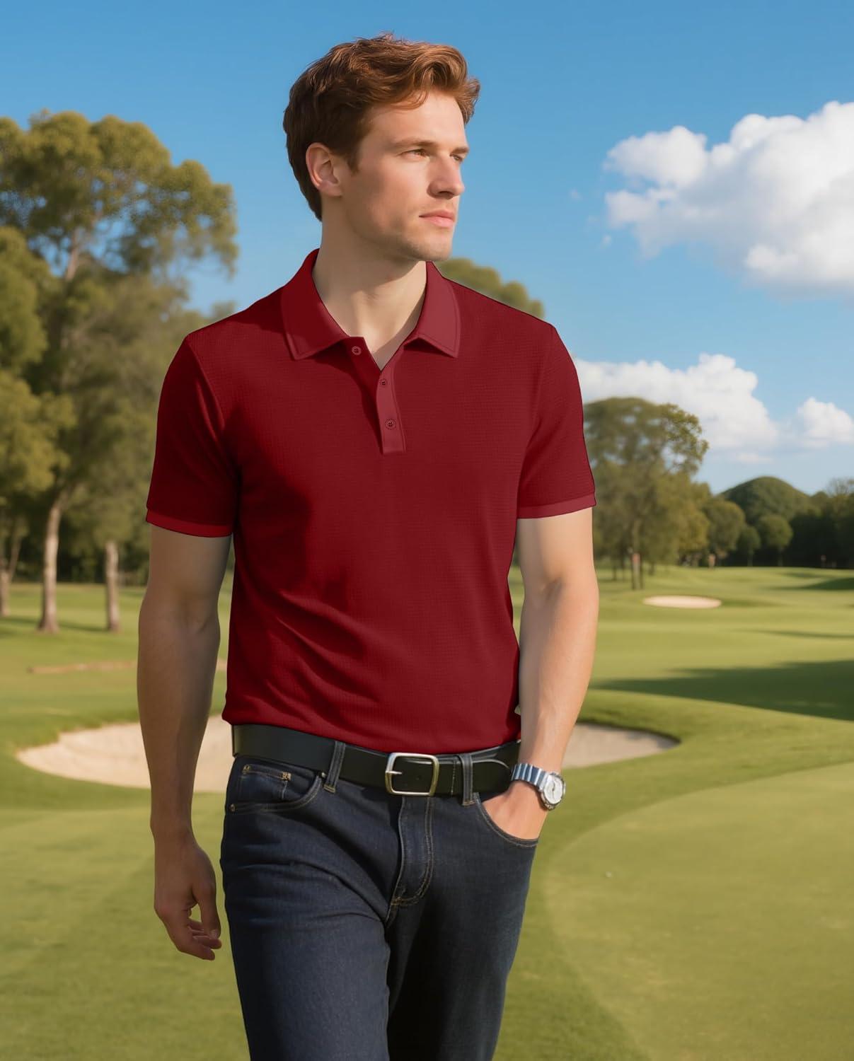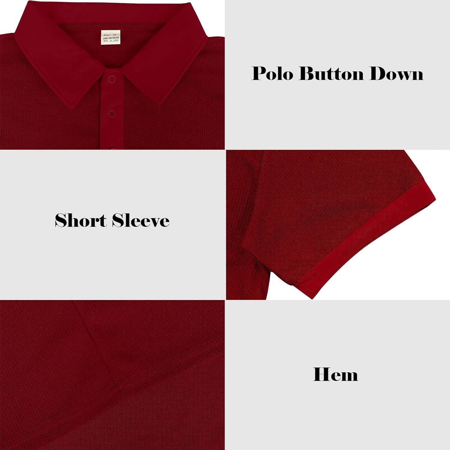 Mens Polo Shirts 2 Pack Breathable Short Sleeve Golf Shirt Casual Button Down Shirt Lightweight Collared Waffle Shirts(Black+wine Red)