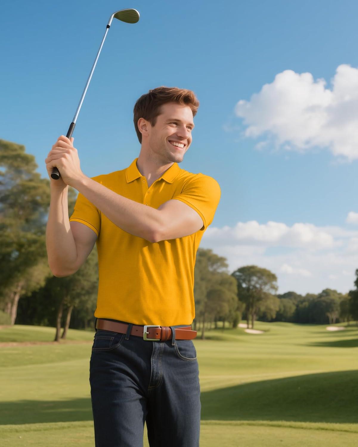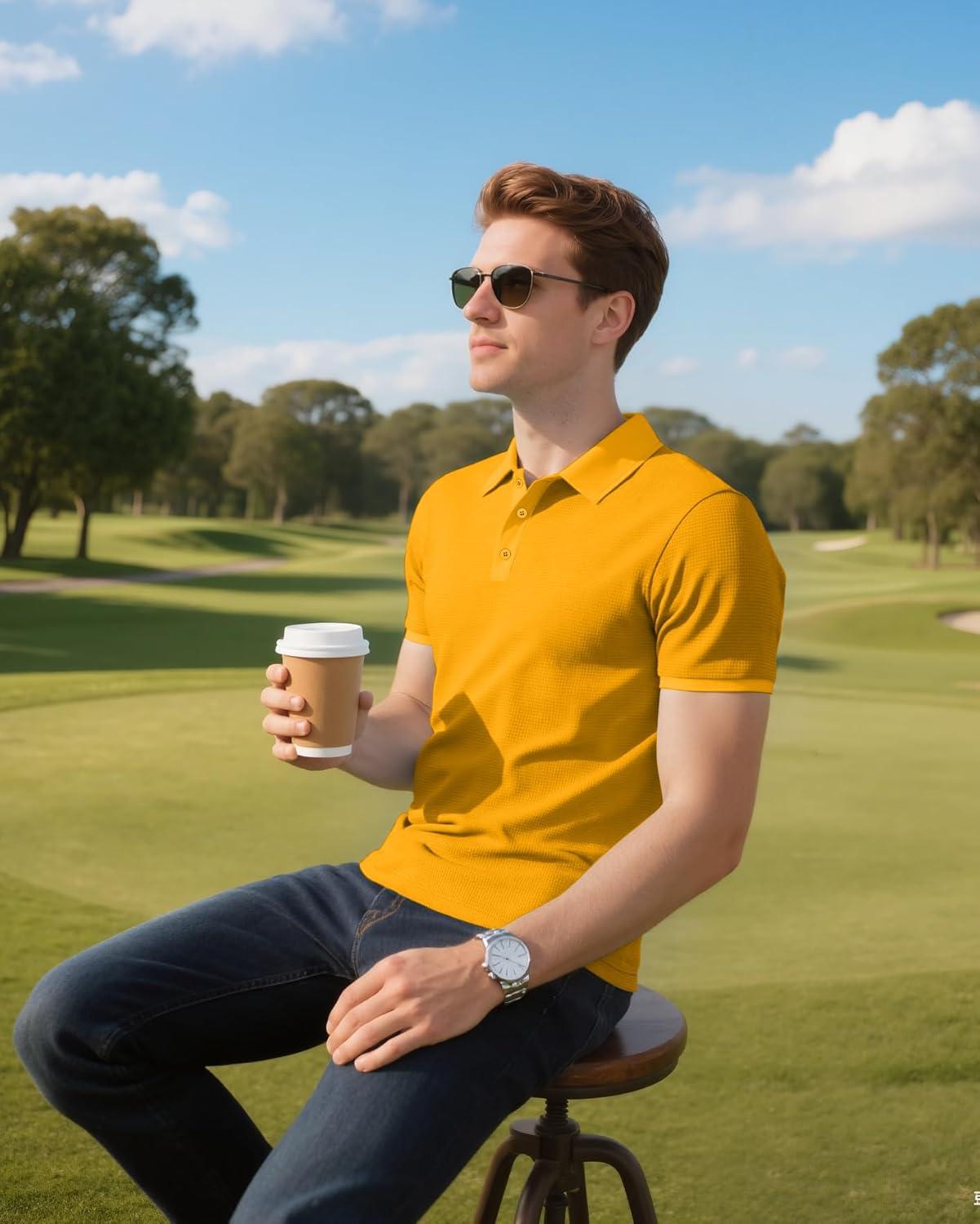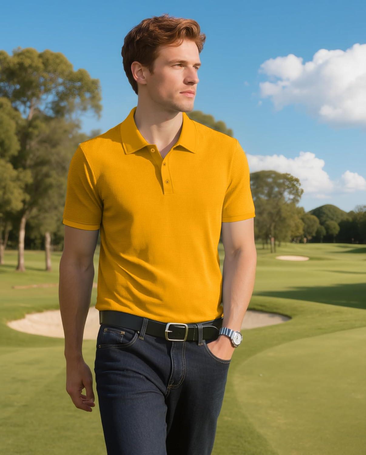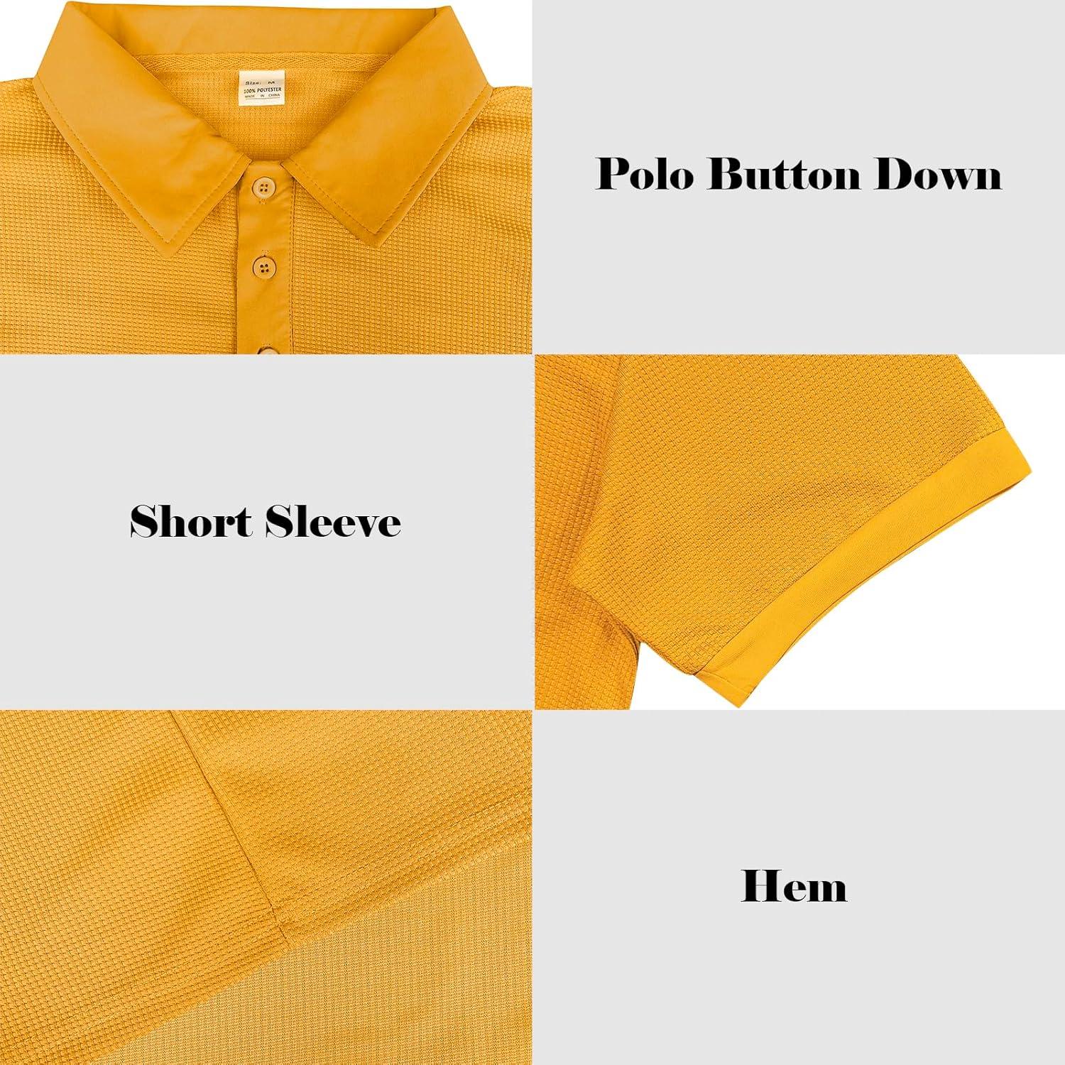 Mens Polo Shirts 2 Pack Breathable Short Sleeve Golf Shirt Casual Button Down Shirt Lightweight Collared Waffle Shirts(Black+yellow)
