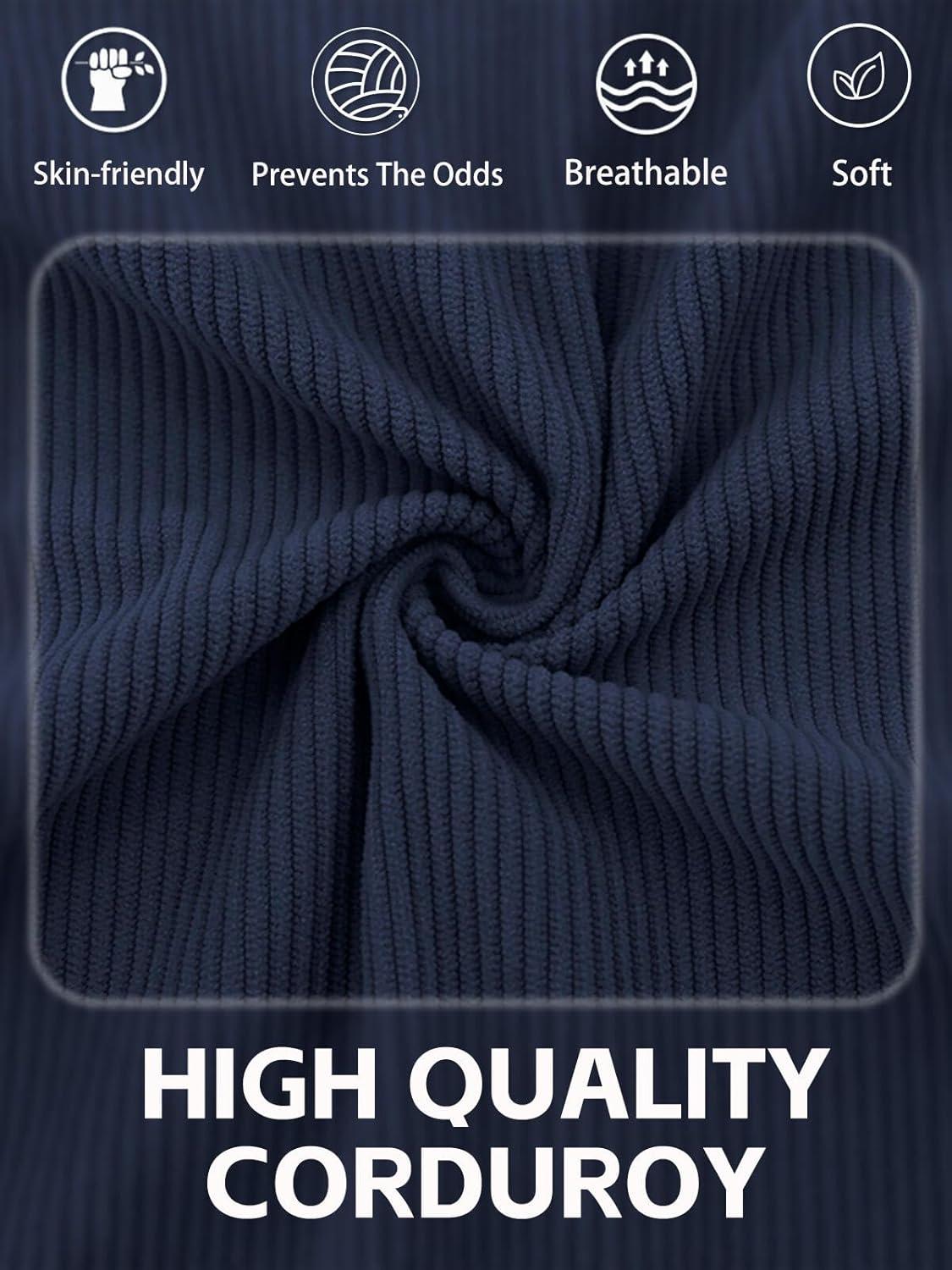 Men’s Quarter Zipper Pullover Corduroy Crew Neck Sweatshirt Spring Autumn Casual Knit Long Sleeve Polo Shirt(Navy)