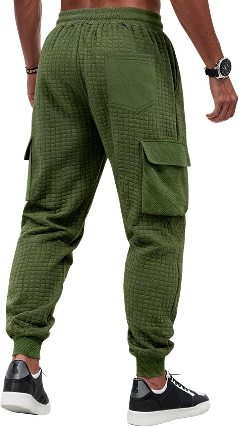 Mens Sweatpants Waffle Knit Pants Elastic Waist Drawstring Jogger Sweatpants with Pockets(Army Green)