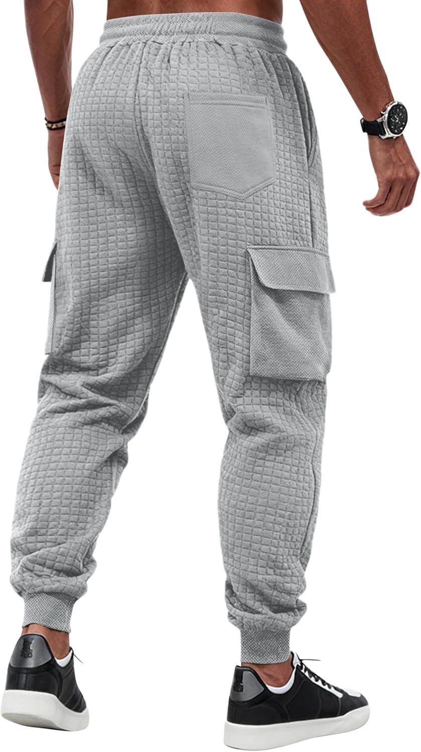 Mens Sweatpants Waffle Knit Pants Elastic Waist Drawstring Jogger Sweatpants with Pockets(Grey)