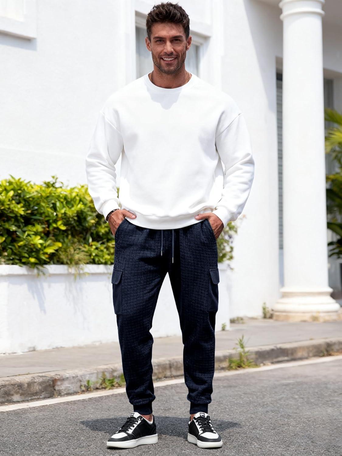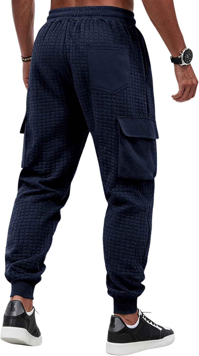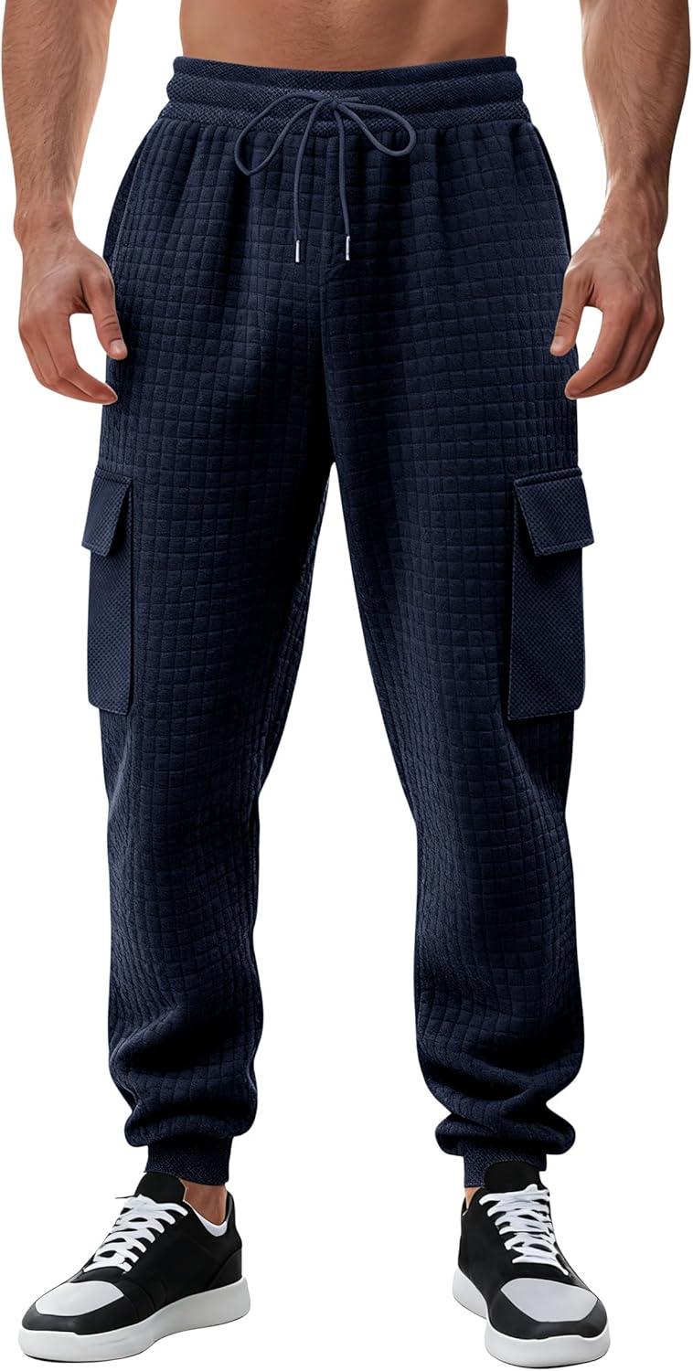 Mens Sweatpants Waffle Knit Pants Elastic Waist Drawstring Jogger Sweatpants with Pockets(Navy Blue)