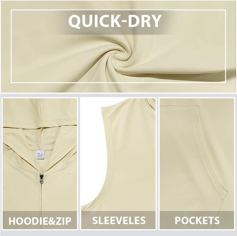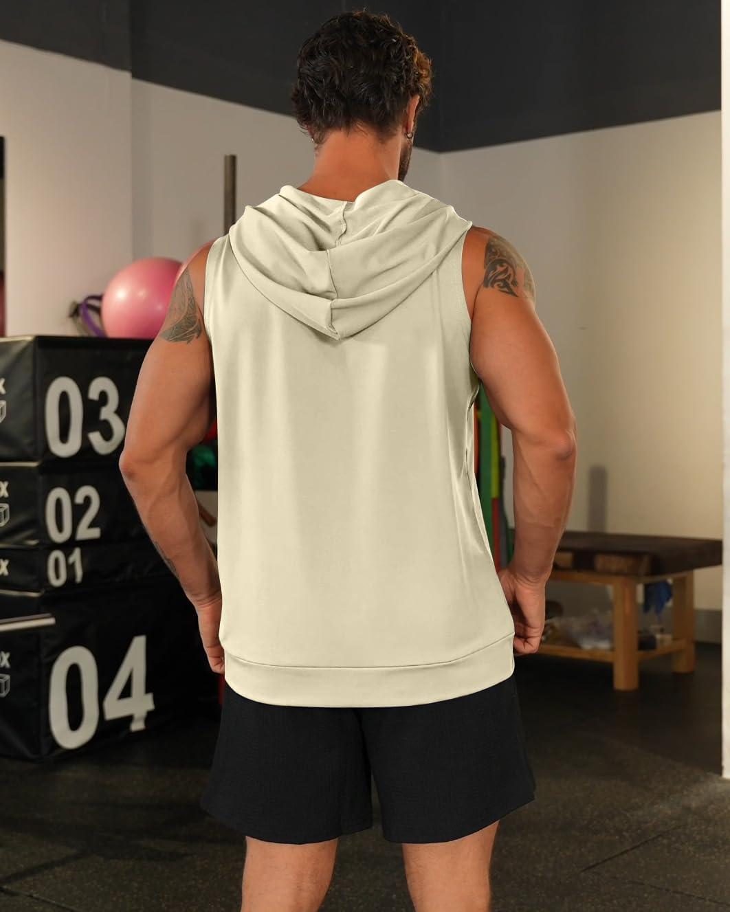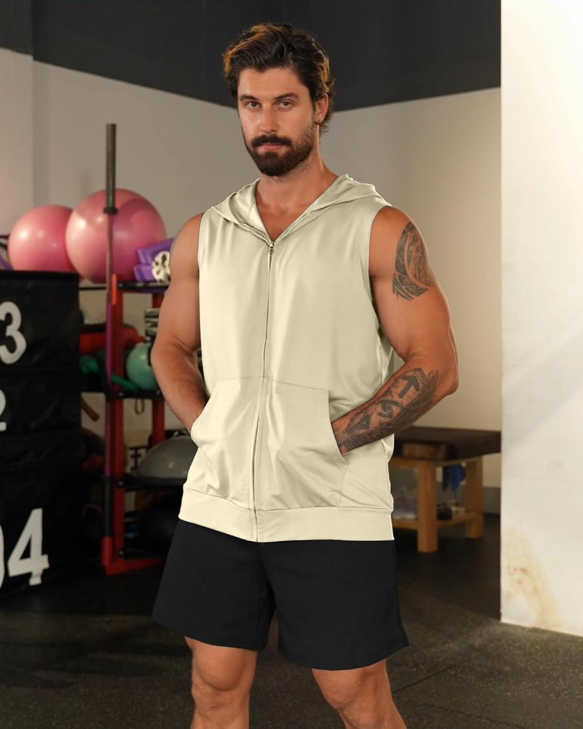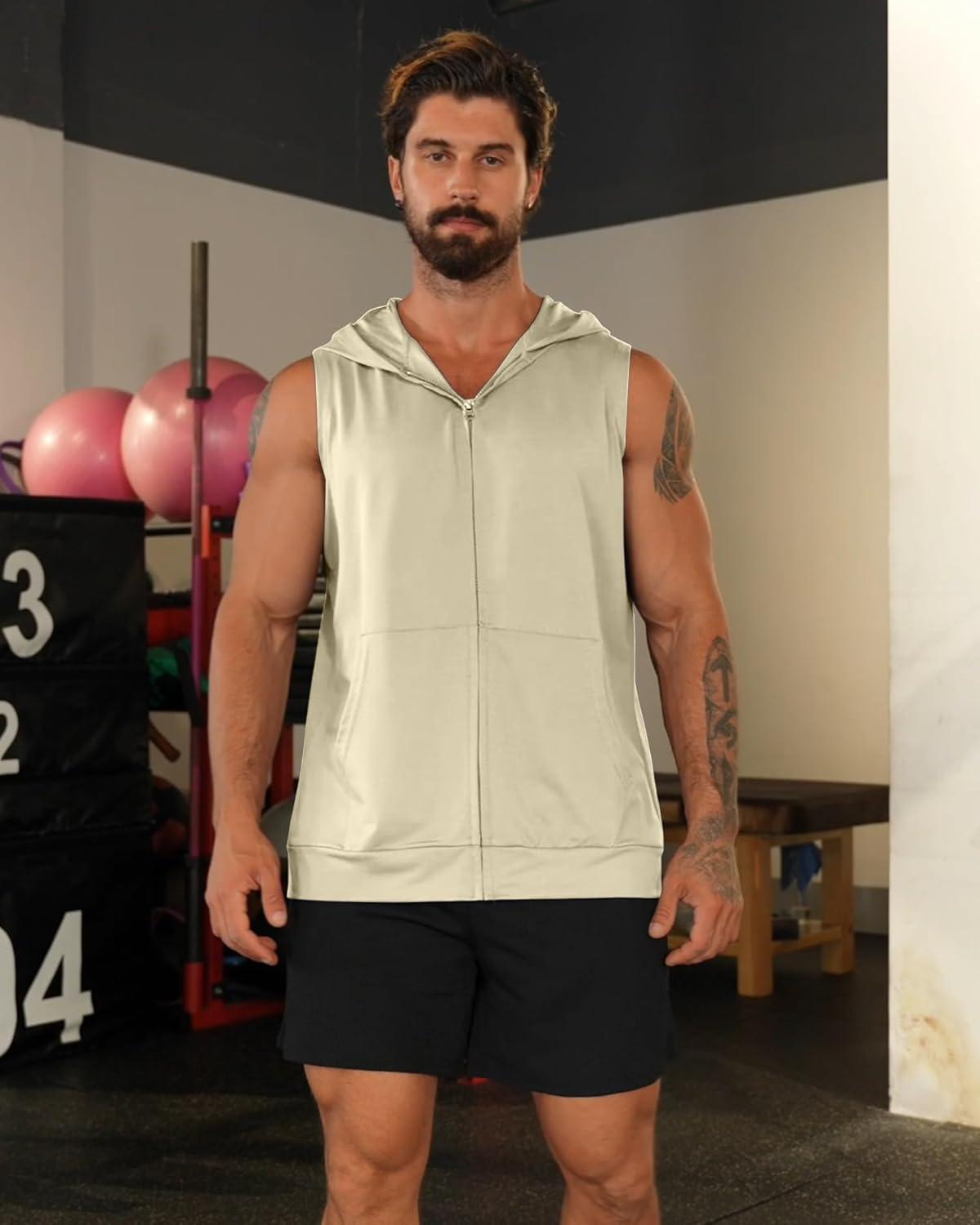 Men’s Workout Hooded Tank Tops Zip Up Sleeveless Gym Shirts Bodybuilding Hoodies Muscle Cut Off T Shirt(Apricot)