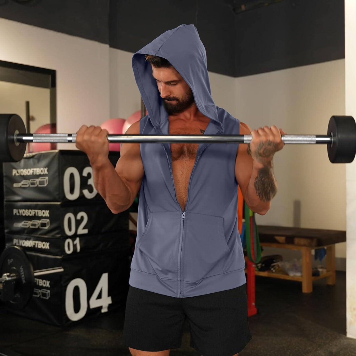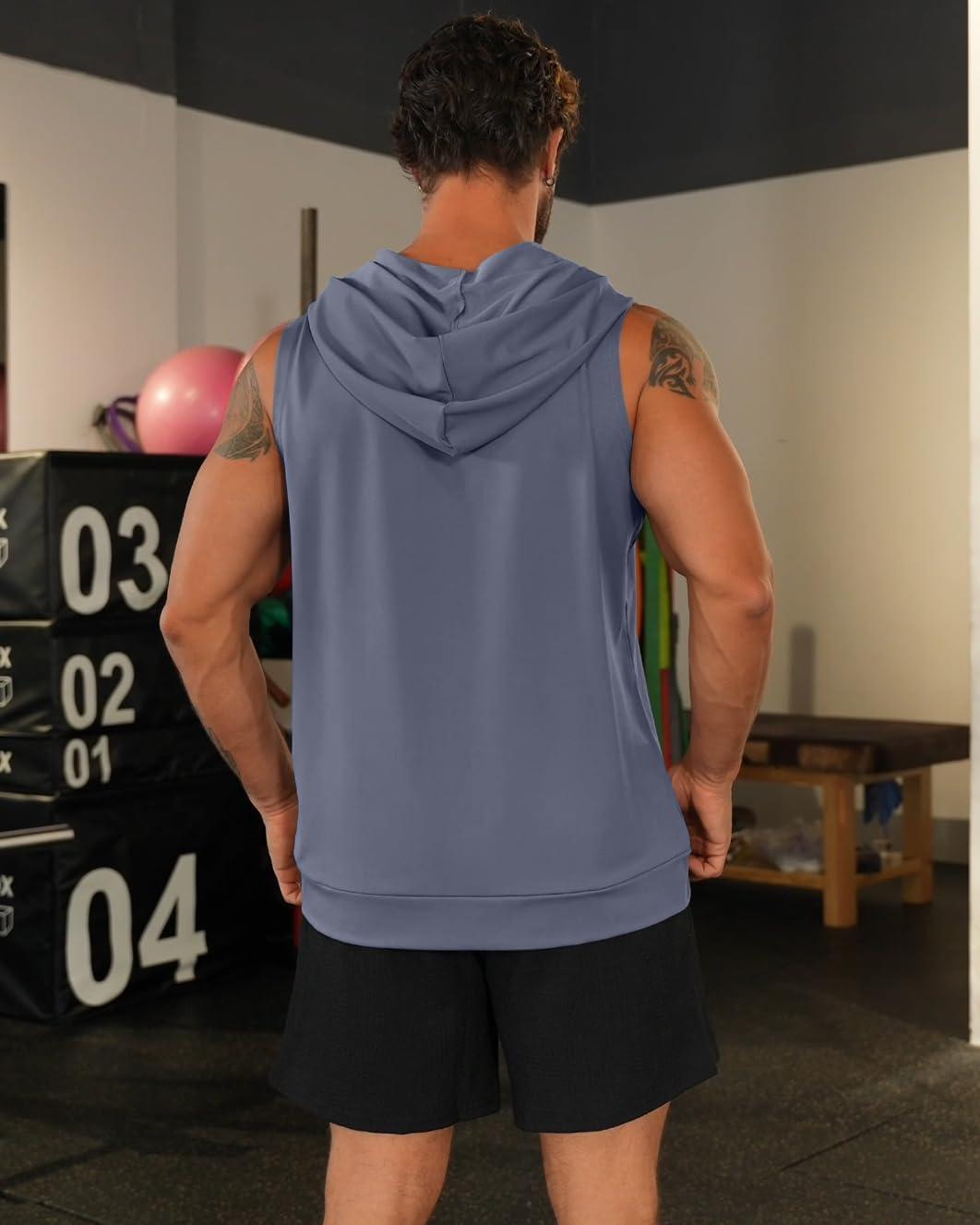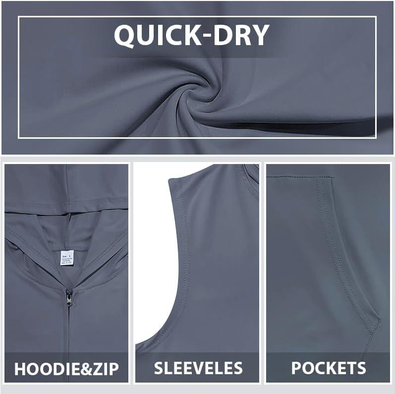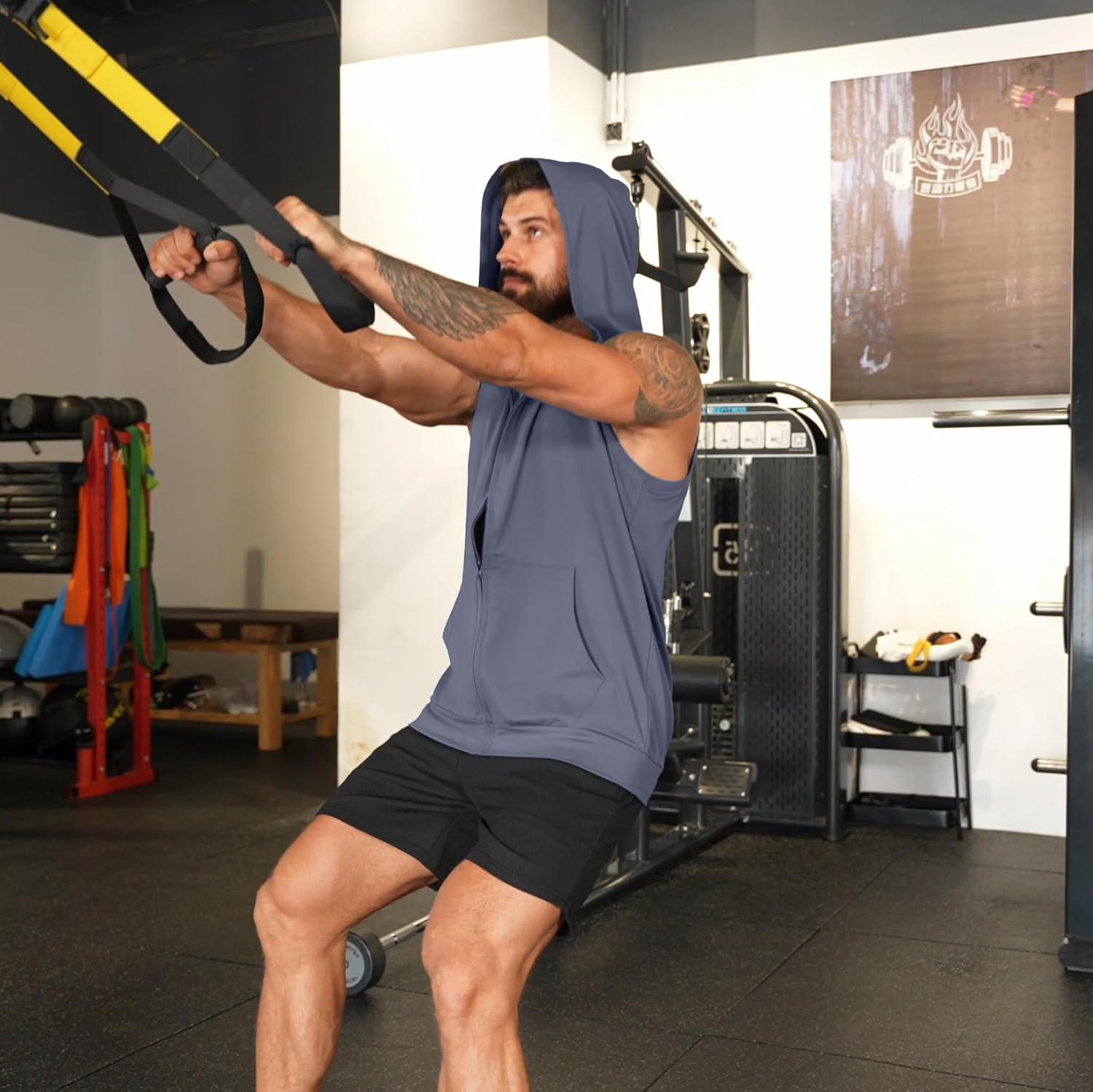 Men’s Workout Hooded Tank Tops Zip Up Sleeveless Gym Shirts Bodybuilding Hoodies Muscle Cut Off T Shirt(Dark Grey)
