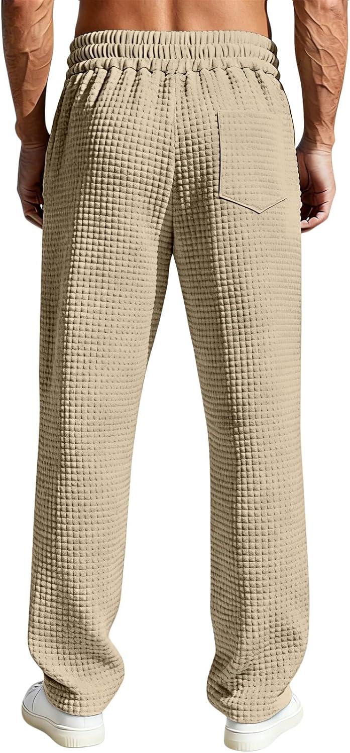 TRFIC Men’s Loose Fit Jacquard Stripes Casual Pants Elastic Waist with Pockets(A-khaki)