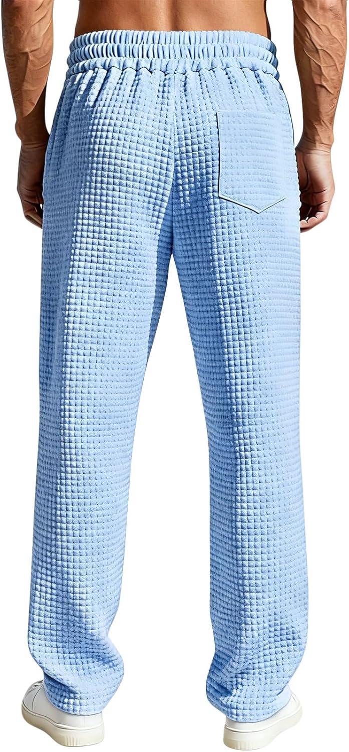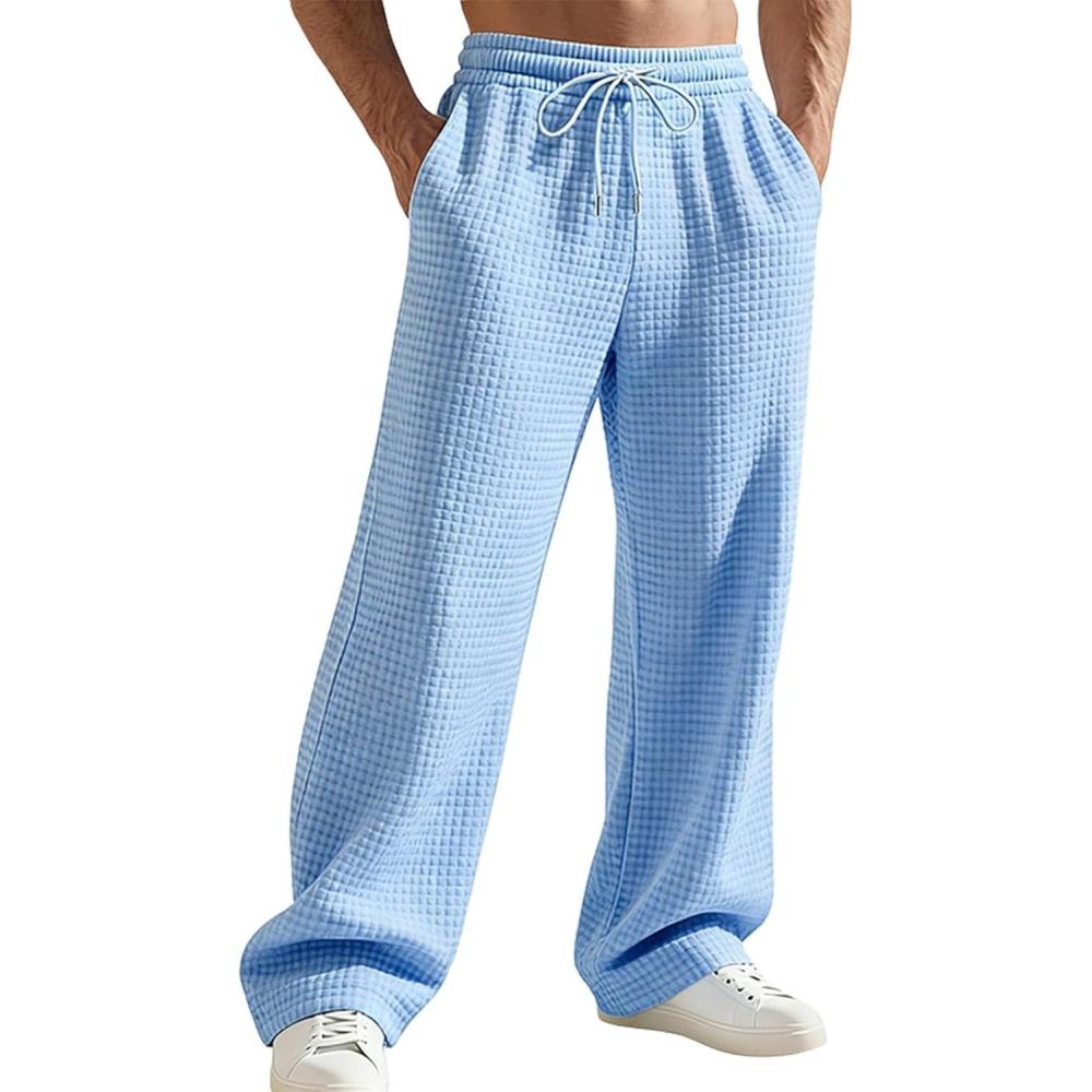 TRFIC Men’s Loose Fit Jacquard Stripes Casual Pants Elastic Waist with Pockets(A-light Blue)