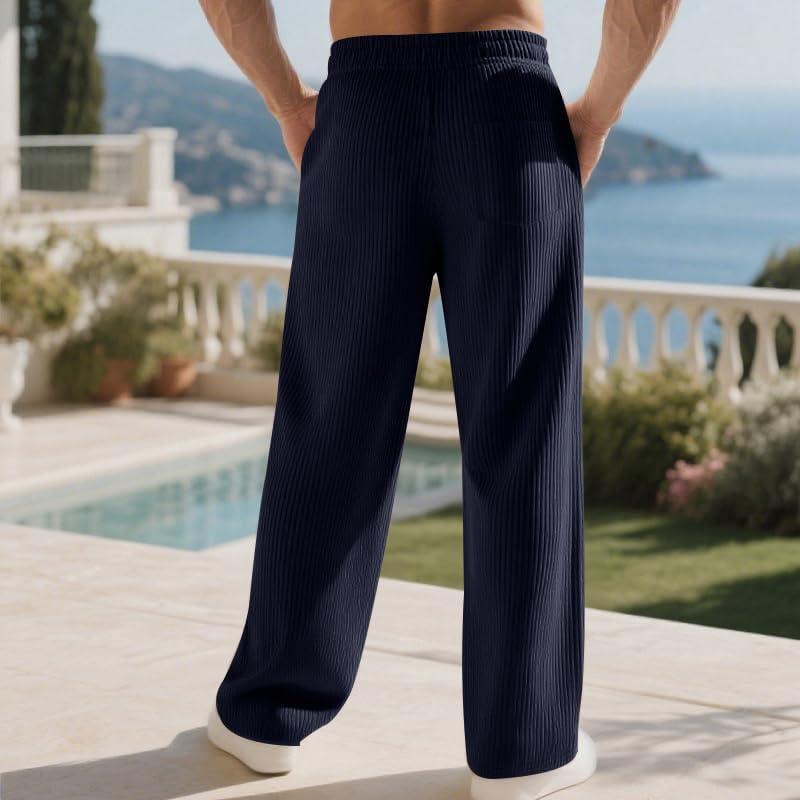 TRFIC Men’s Loose Fit Jacquard Stripes Casual Pants Elastic Waist with Pockets(Navy)